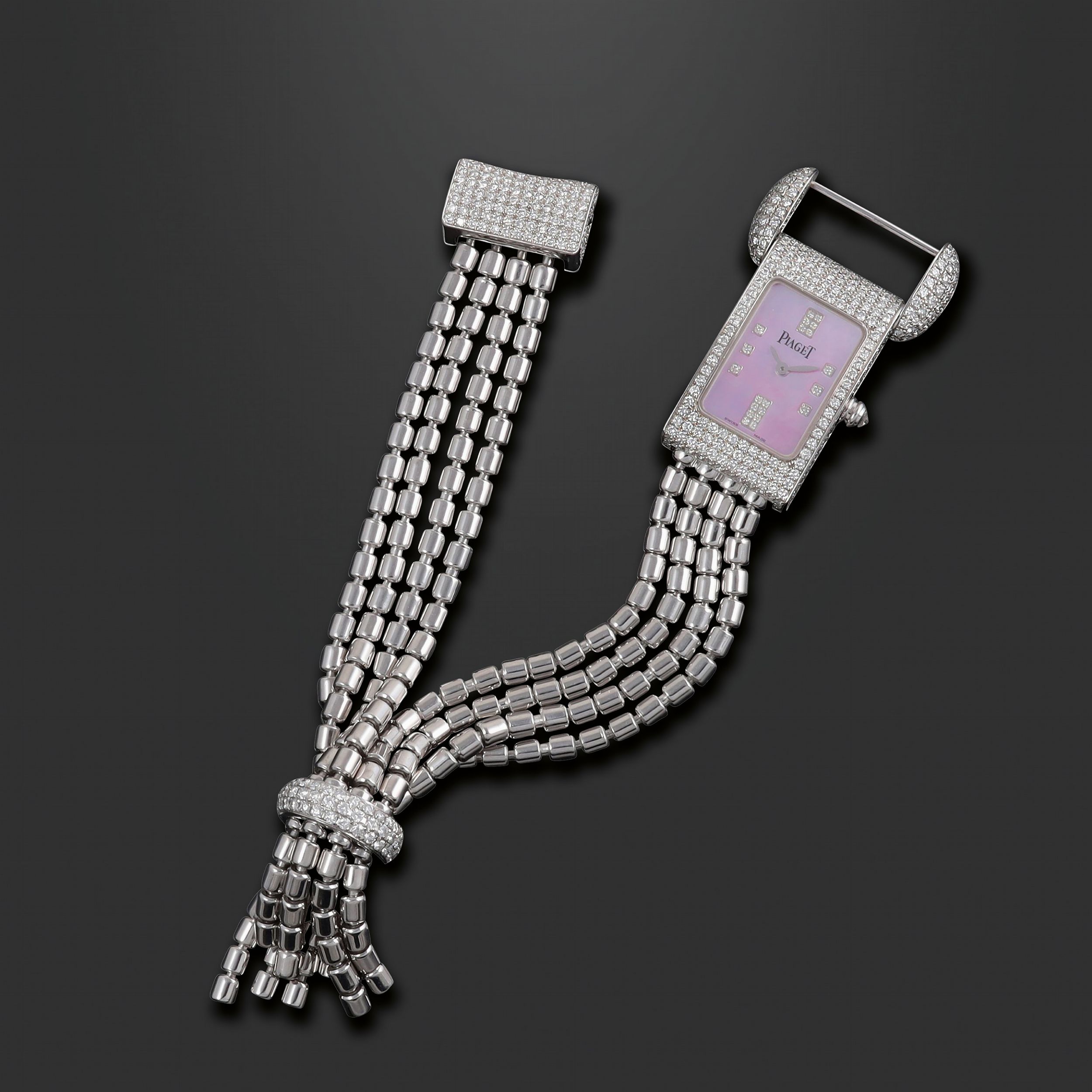 Cassa: No. 894120, in oro bianco 18K e brillanti, fondello serrato da viti. Vetro zaffiro