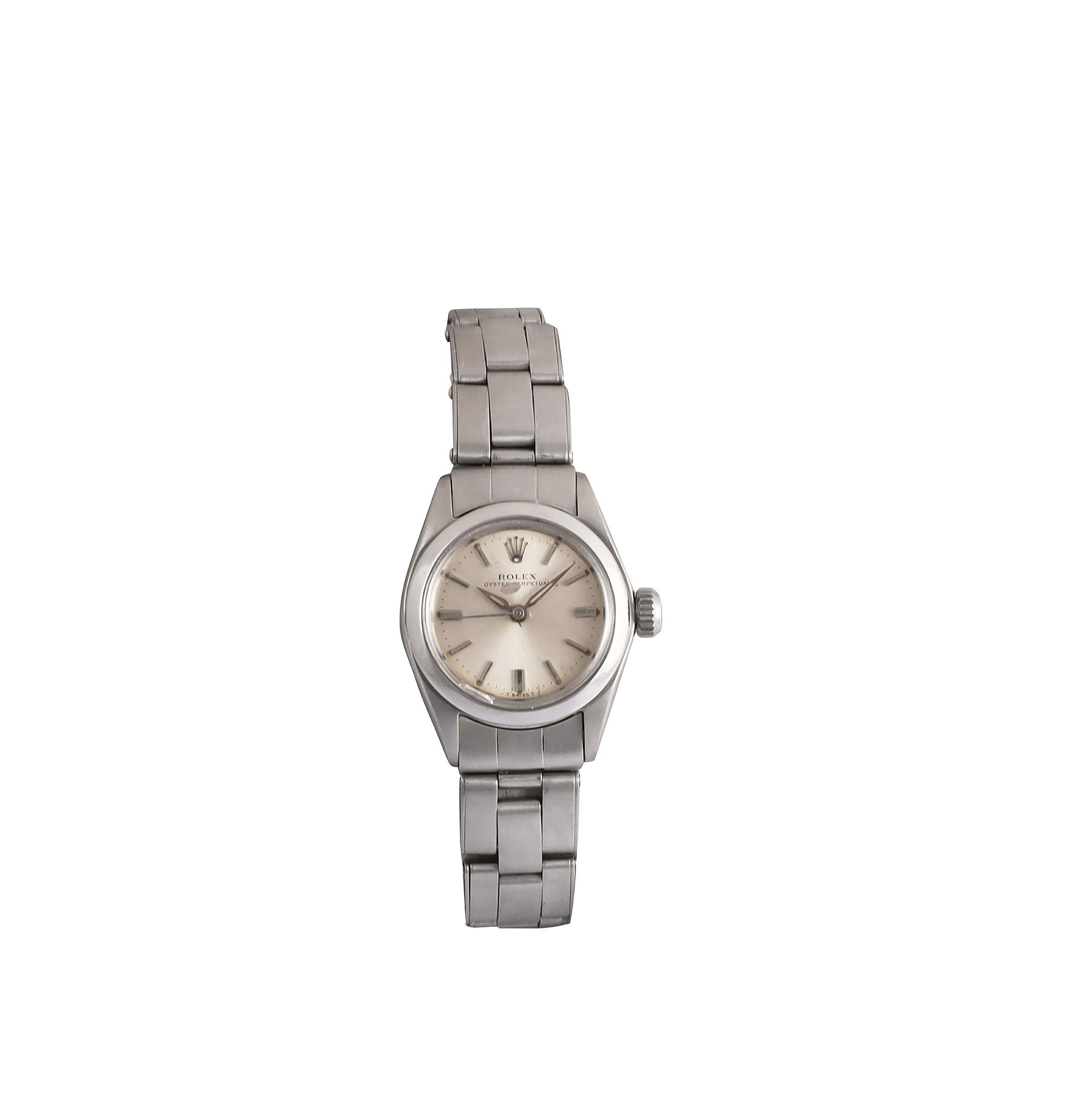 Ref: 6618Cassa: in acciaio, fondello a viteQuadrante: argento, indici a bastone. Sfere AlphaBracciale: originale rivettato elastico con chiusura deployanteAnno: 1965 circaDIAM: 25 mmNota: quadrante segnato