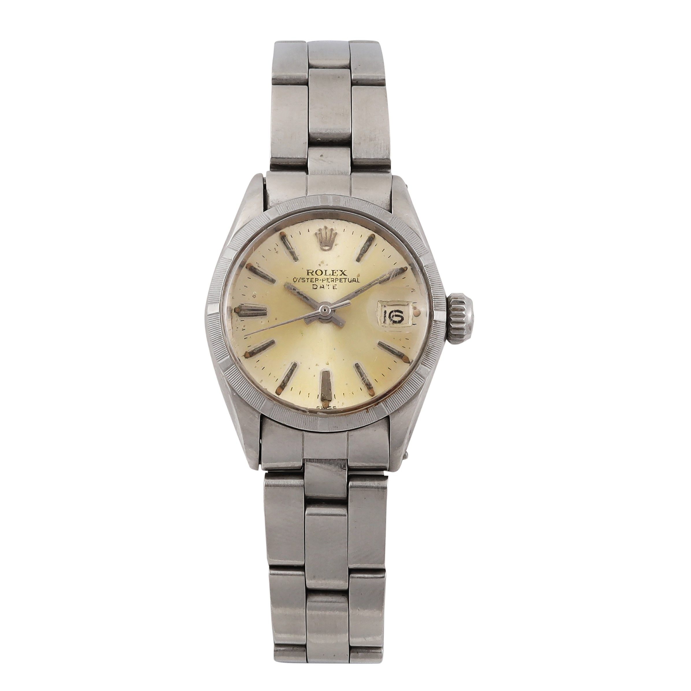 Ref: 6519Cassa: in acciaio, fondello a viteQuadrante: argento, indici a bastone, datario. Sfere a bastoneMovimento: automaticoBracciale: originale Oyster con chiusura deployanteAnno: 1950 circaDIAM: 25 mm