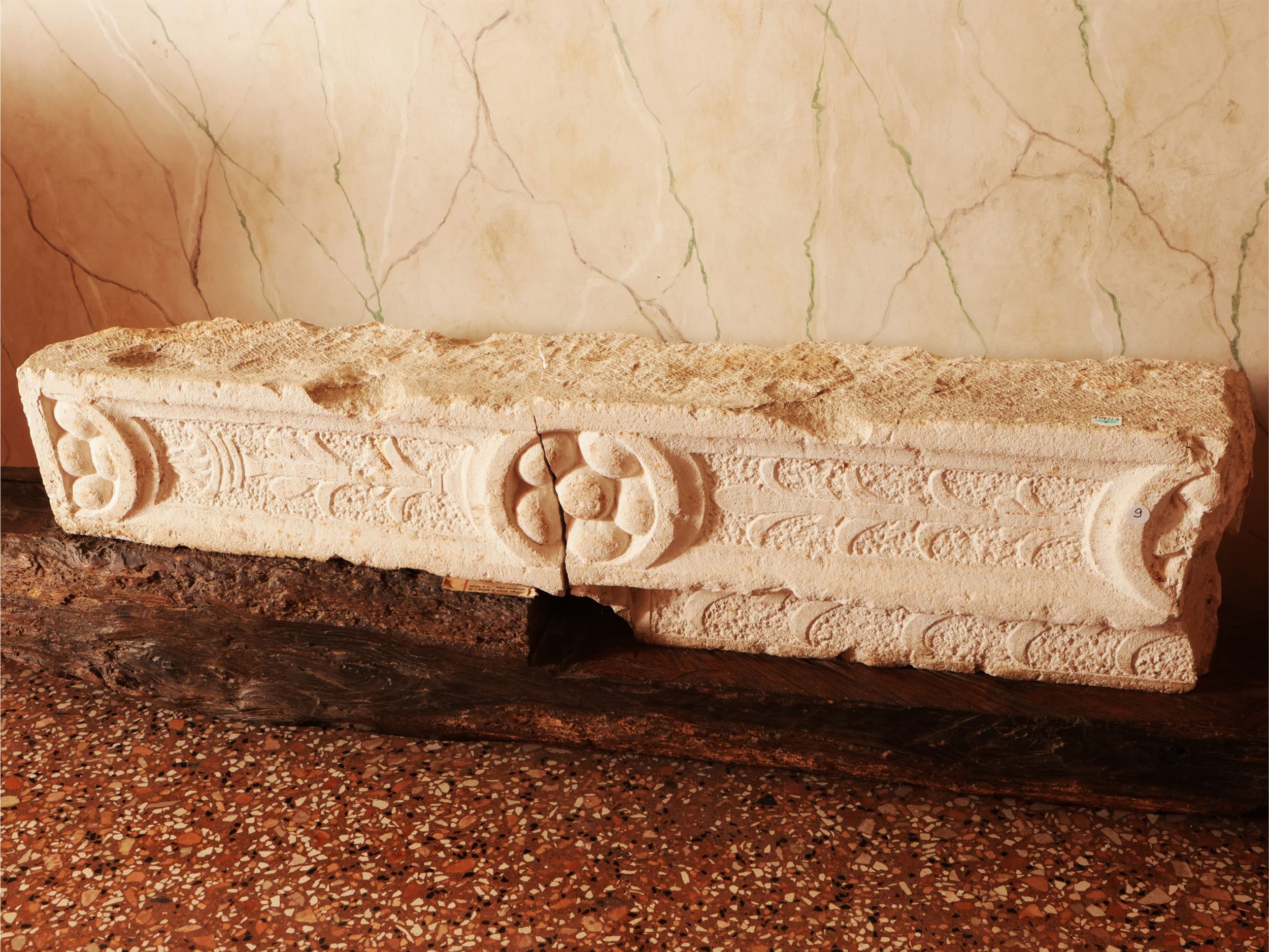 Antico frammento di architrave in marmo bianco