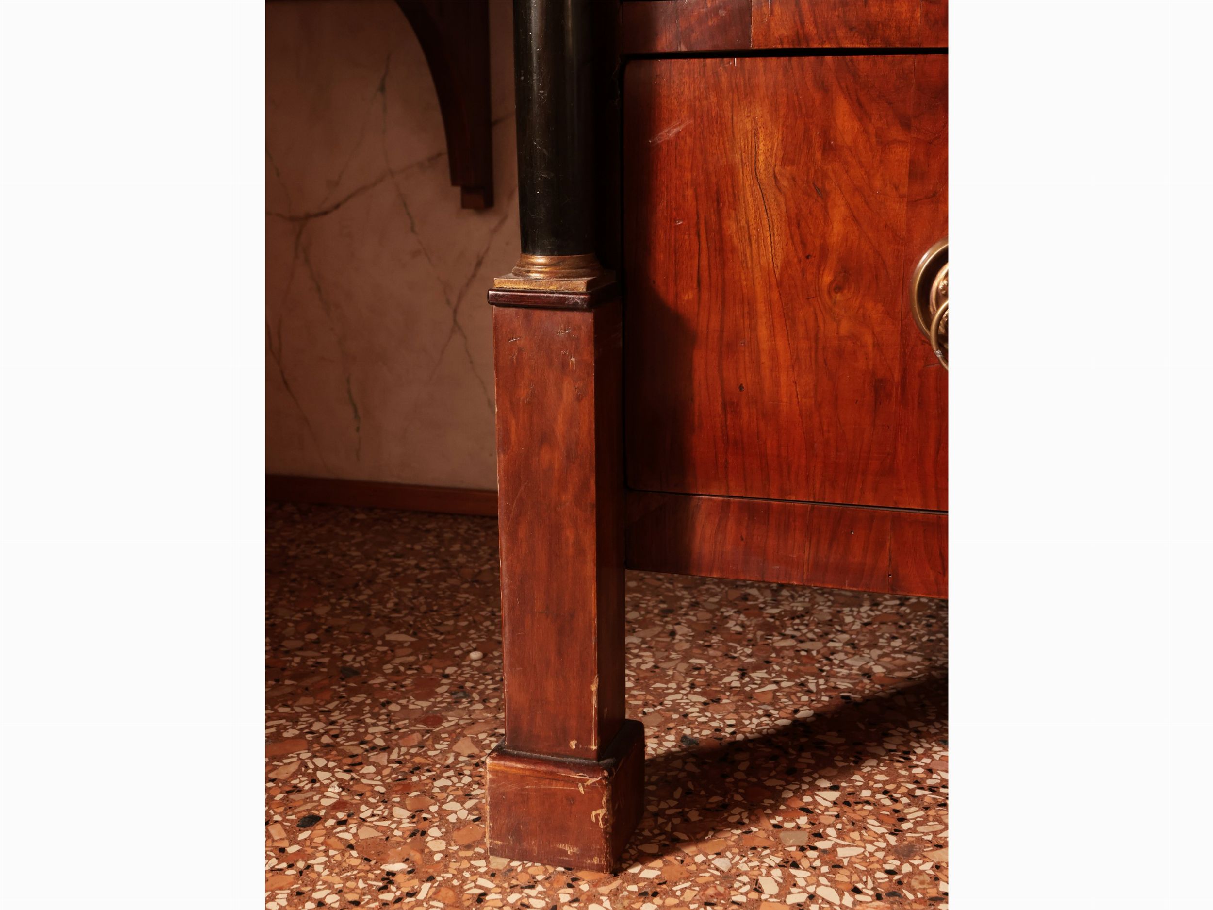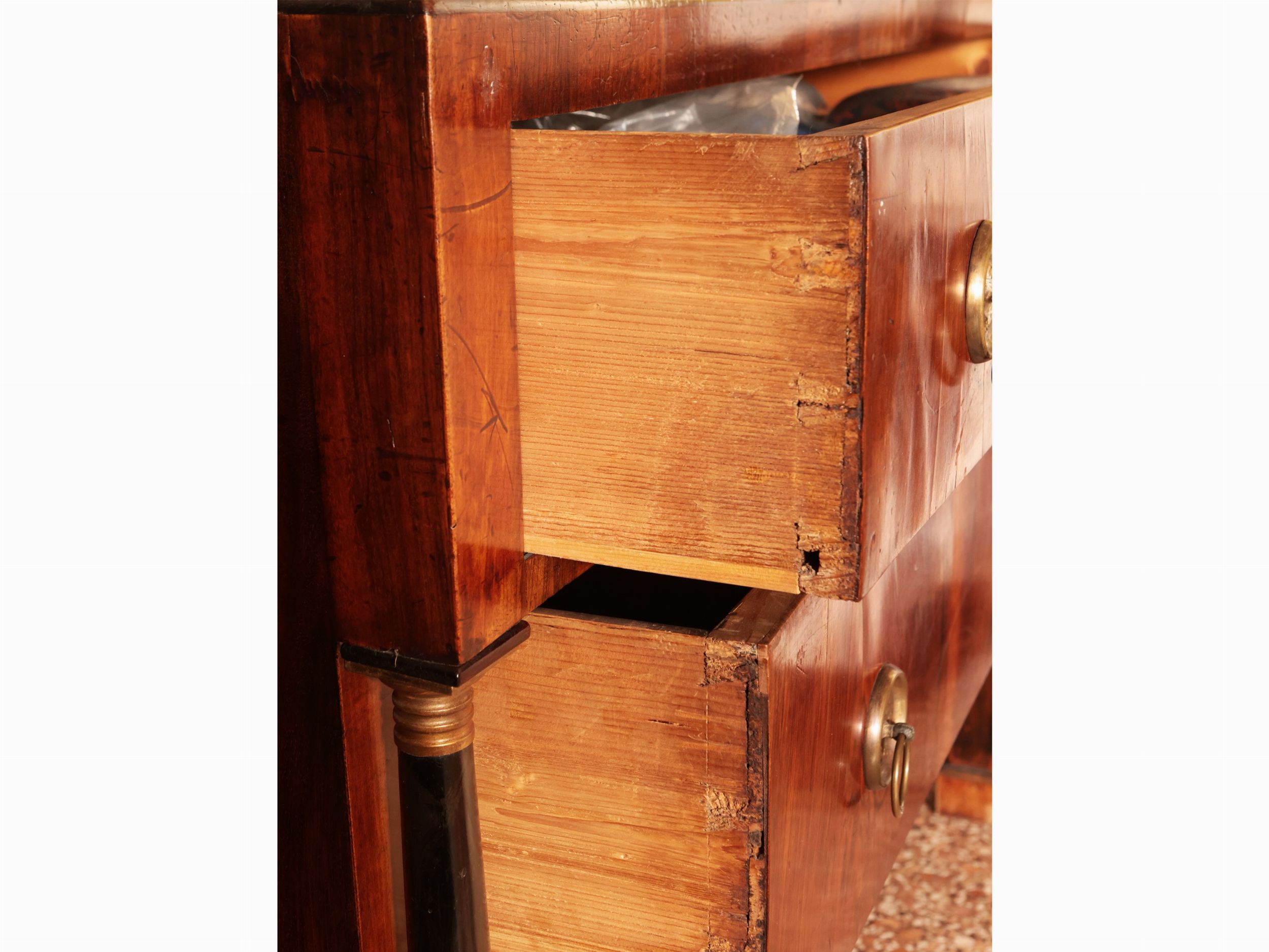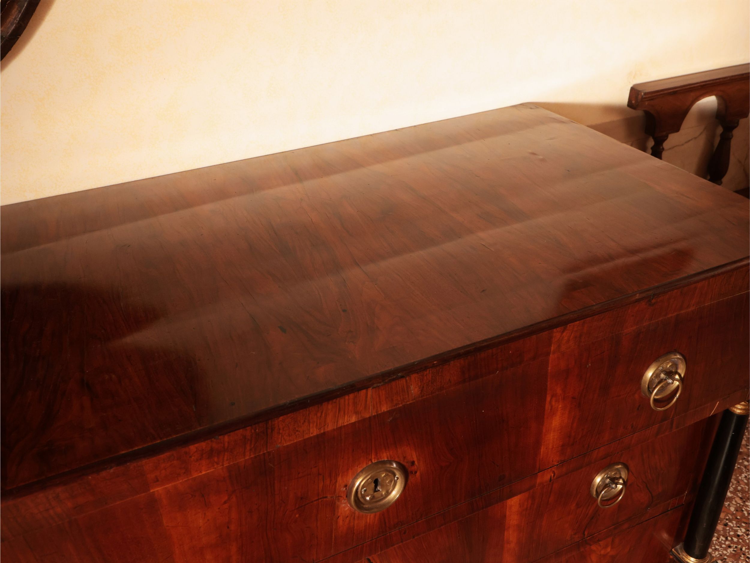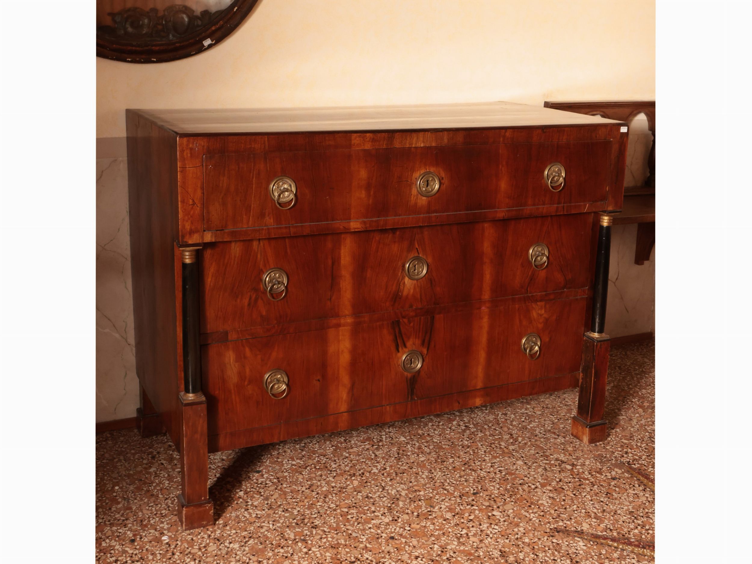 prima metà del XIX secolo tre cassetti sul fronte dritto tra lesene a colonna ebanizzate con finali lumeggiati in oro, piedi a plinto, lievi difetti