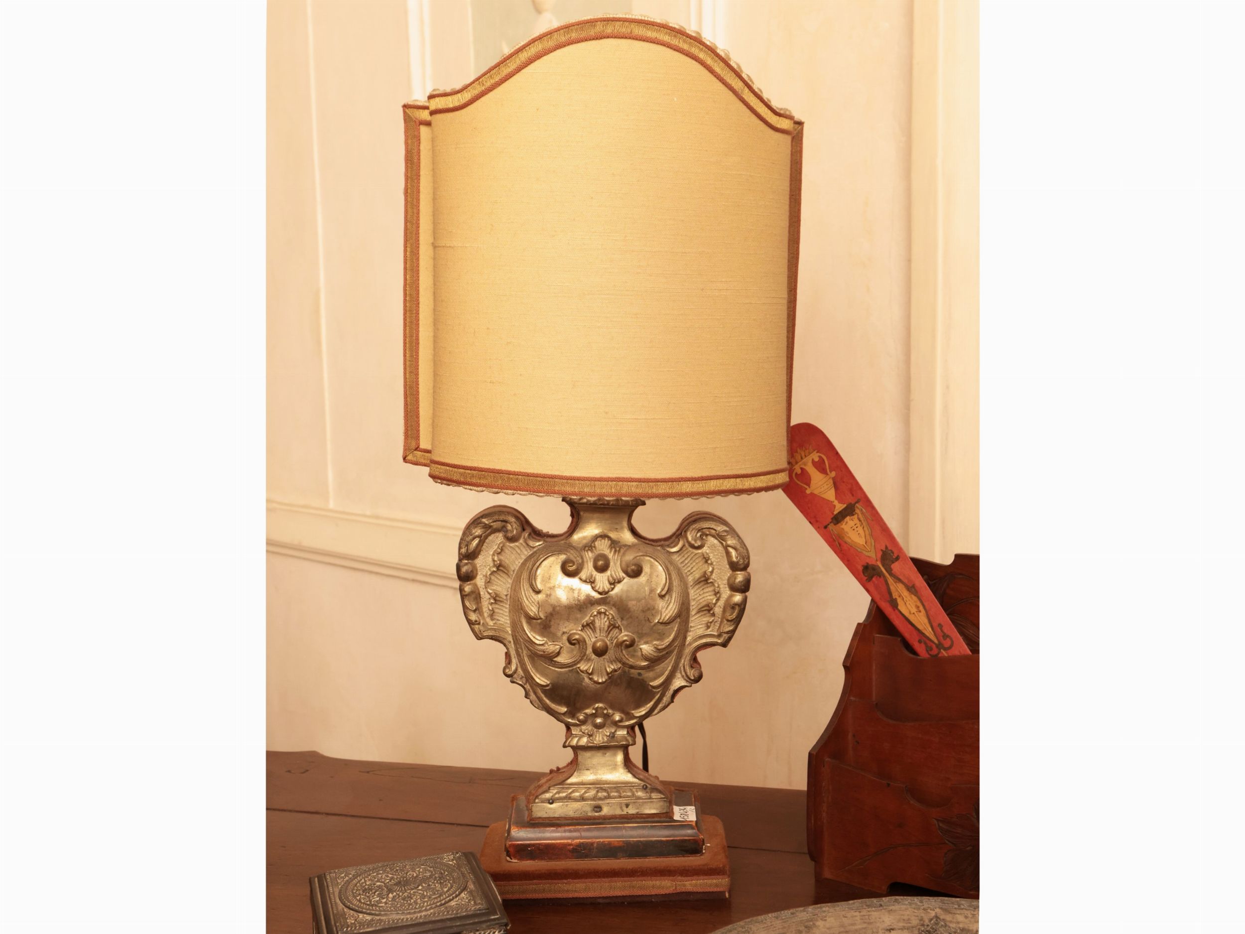 XIX secolo fronte rivestito in tole sbalzata e dorata, montate a lume, corredate di paralume
