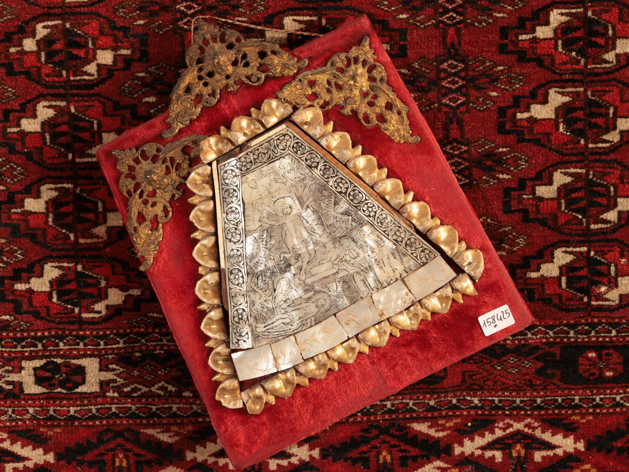 XIX secolo realizzata con incisione su placche di madreperla, applicazioni in bronzo dorato
