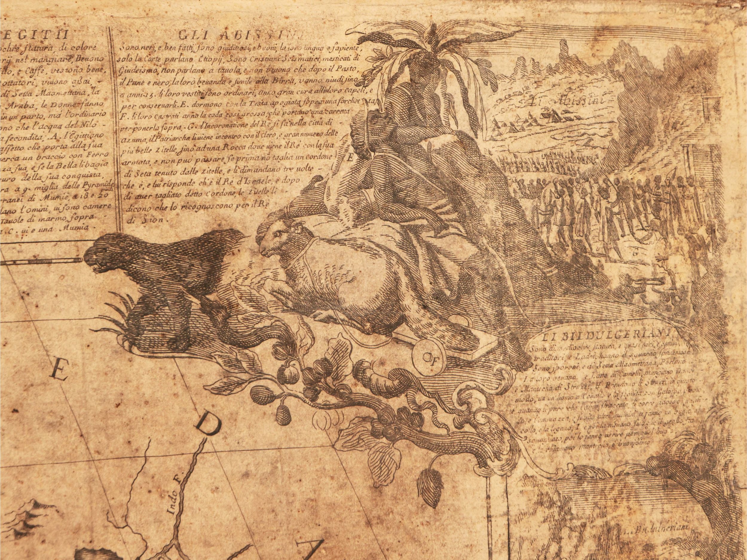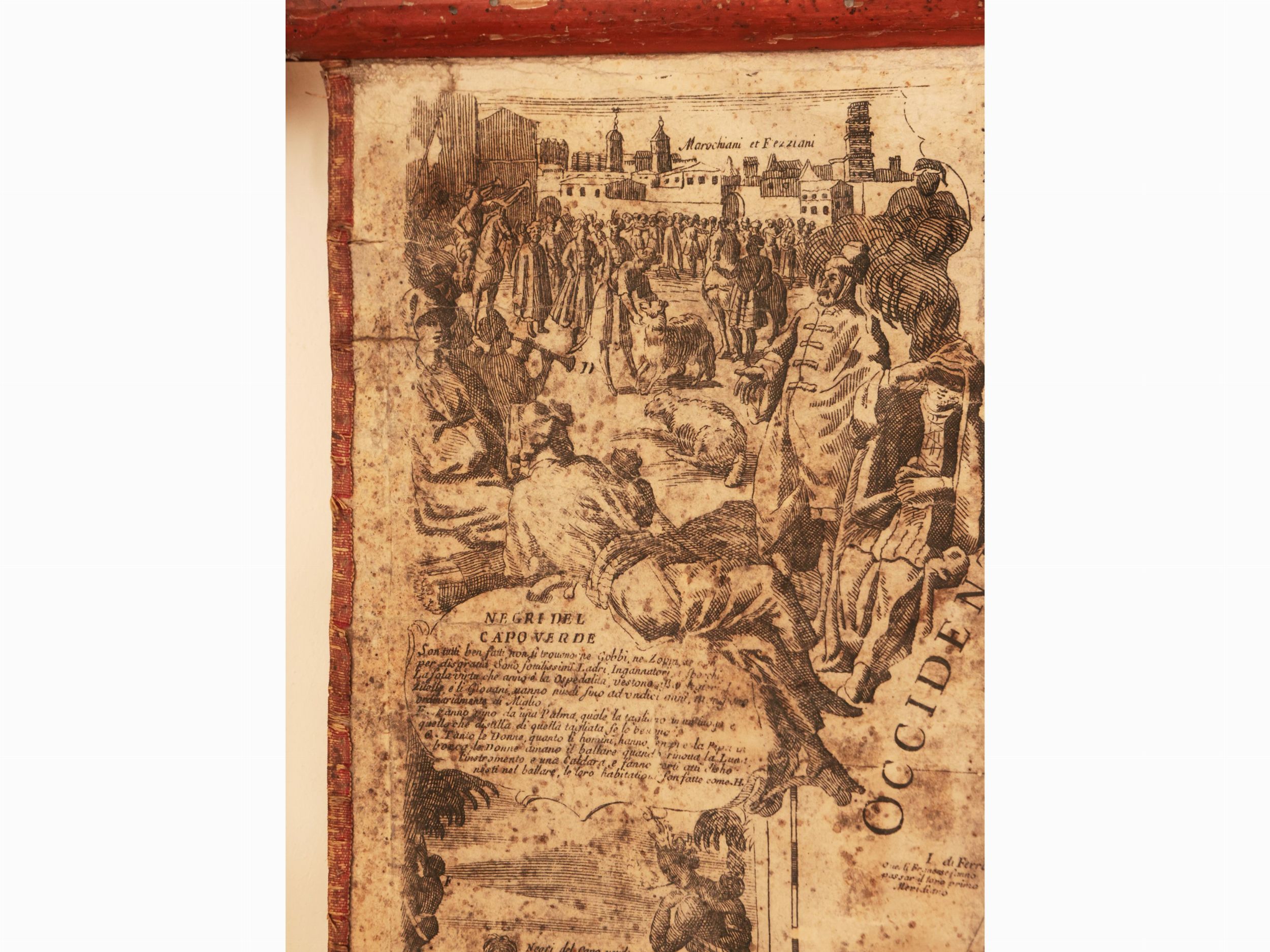 (XVIII - XIX secolo) incisione su rame, applicata a tela e montata su sostegni in legno in epoca coeva all'edizione, foxing, alcuni difetti