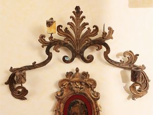 h cm 74x46x79 XIX secolo un braccio portacandele realizzato come tralcio vegetale, montata a lume, corredata [..]