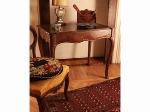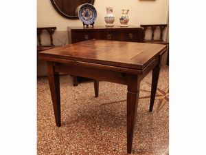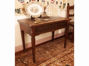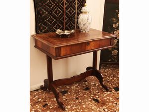 h cm 80x88x56 metà del XIX secolo piano intarsiato in altre essenze con sottili filettature, un cassetto nella [..]