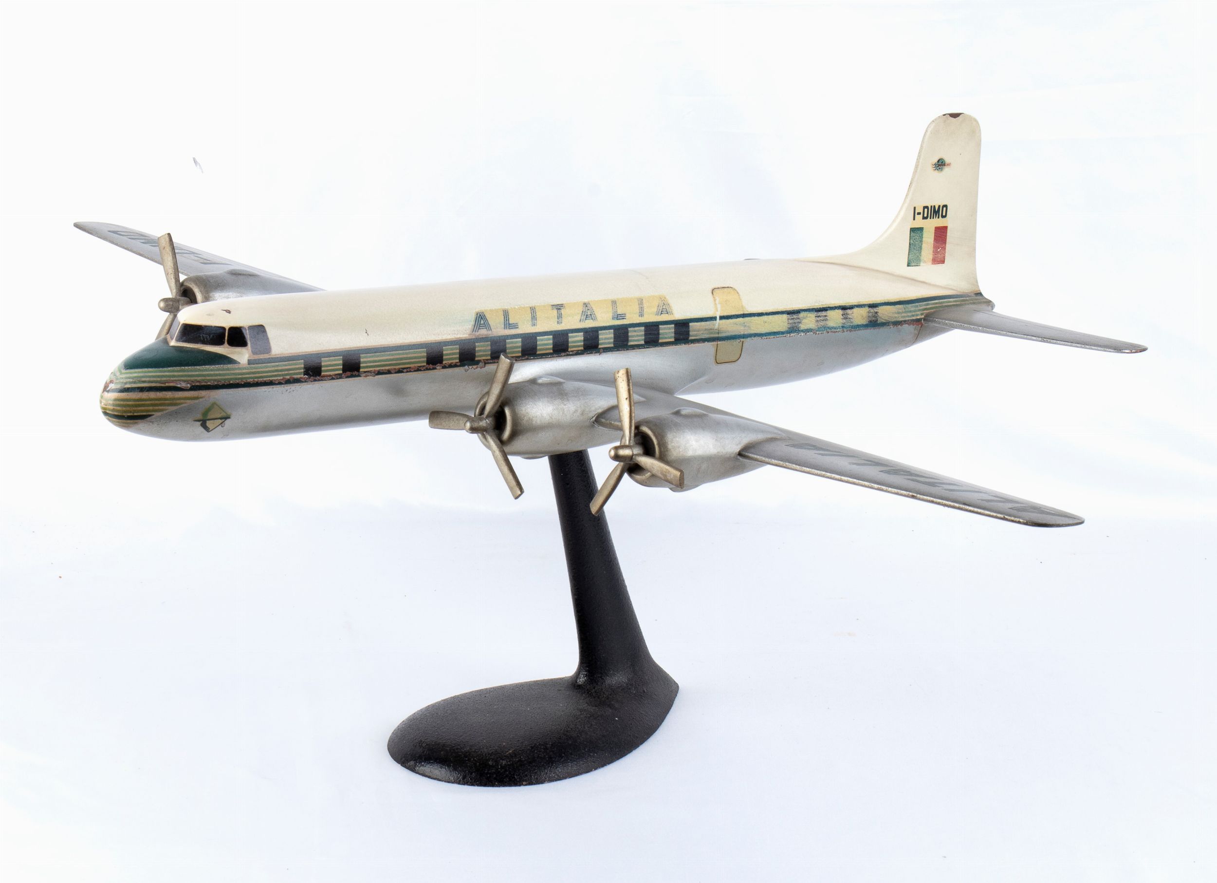 Bellissimo e raro modello di quadrimotore DC-6B con livrea ALITALIA , I-DIMO . Il velivolo entrĂ² in servizio nel 1954 e fu dismesso nel 1961. Il modello è coevo, originale degli anni '950, usato come promozionale dalla ALITALIA stessa, per uffici dirigenziali, o agenzie di viaggio.
