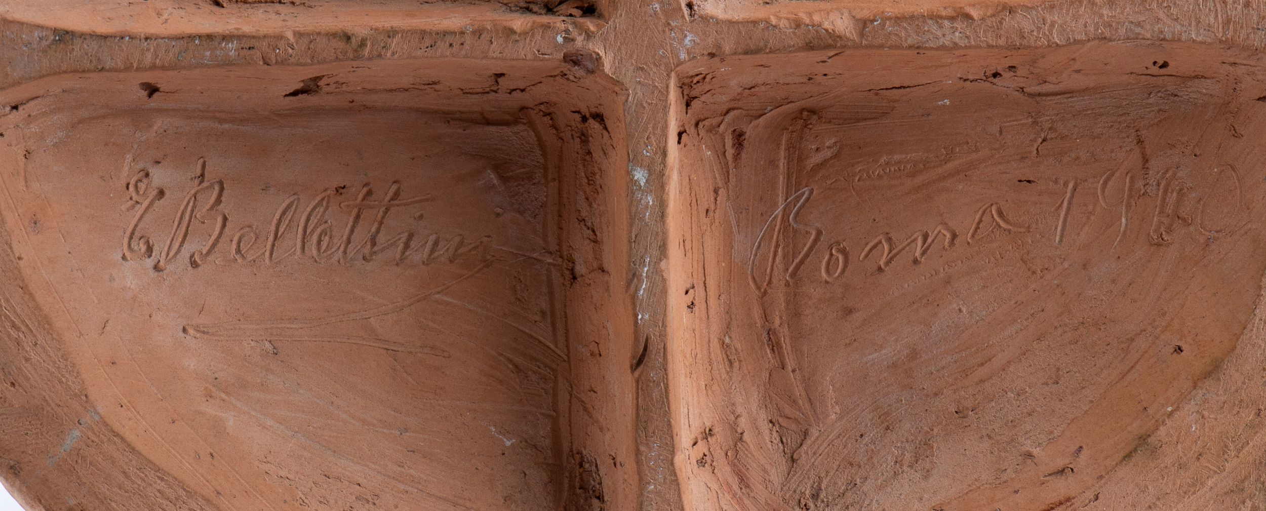 cm.18 Terracotta firmata E.Bellettini - Roma 1940 , celebrativa dell' Asse Roma-Berlino-Tokyo , il Tripartito. In rilievo i volti di Mussolini, Hitler, Hirohito a sormontare l'iscrizione ASSE - BERLINO ROMA TOKYO con i simboli fascista, nazista e del sole nascente. In perfette condizioni, misura cm.18 di diametro