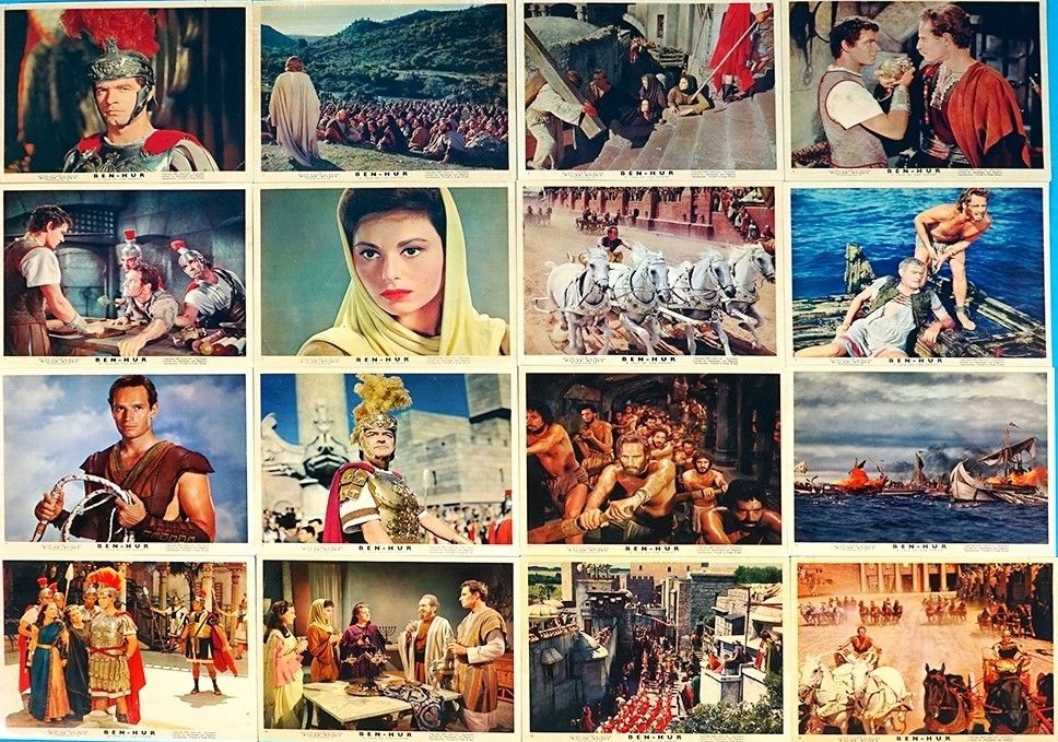 Set completo di 16 lobby card originali del film BEN HUR 1959, prima edizione USA