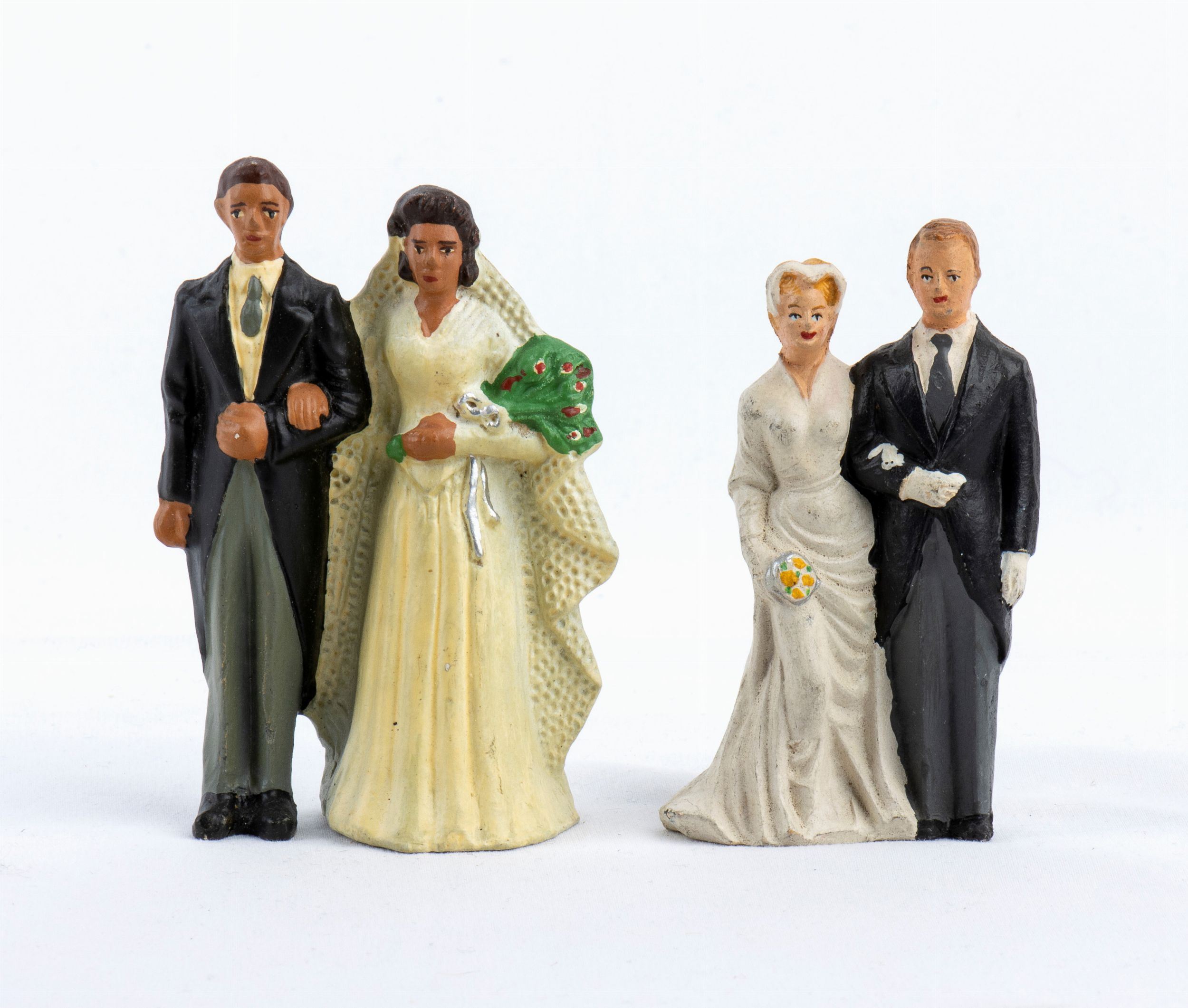 Composizione 1910-1950 Lotto di due coppie di sposi, in abiti da cerimonia, dipinti a mano, marcati NARDI ITALY, DURSO. Misure circa cm.9 - 9,5. Materiale composizione, metà XX secolo, in ottime condizioni
