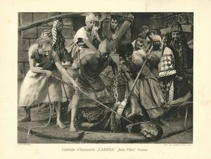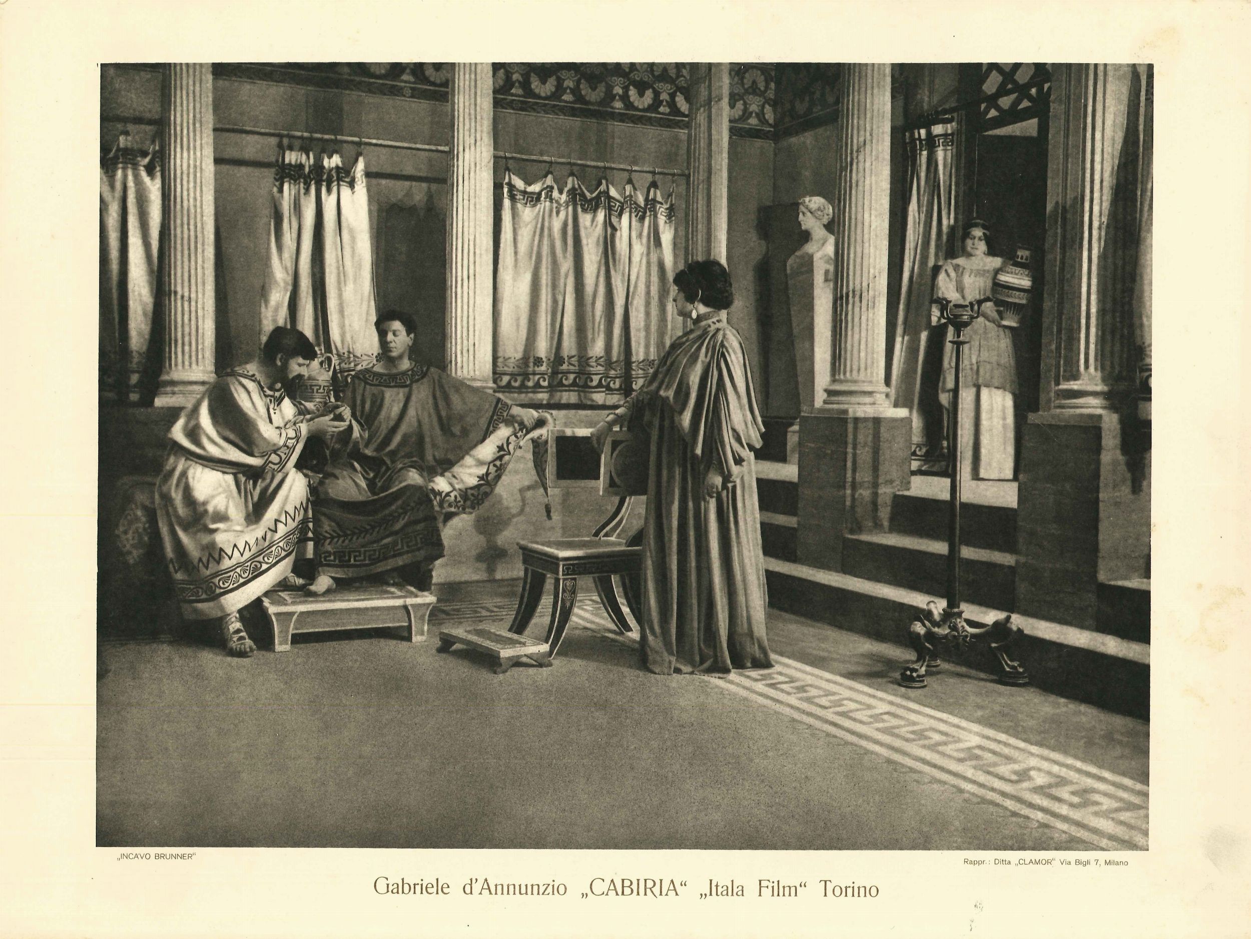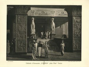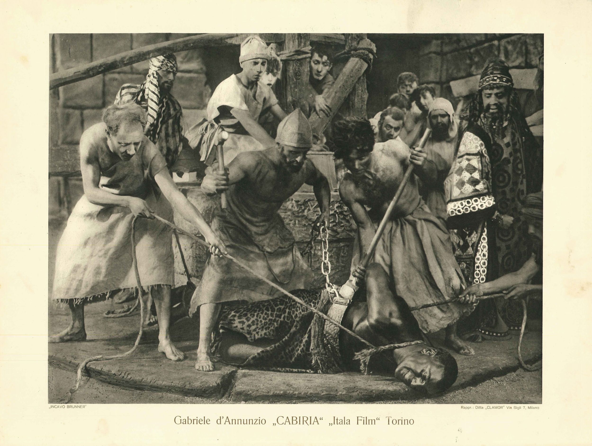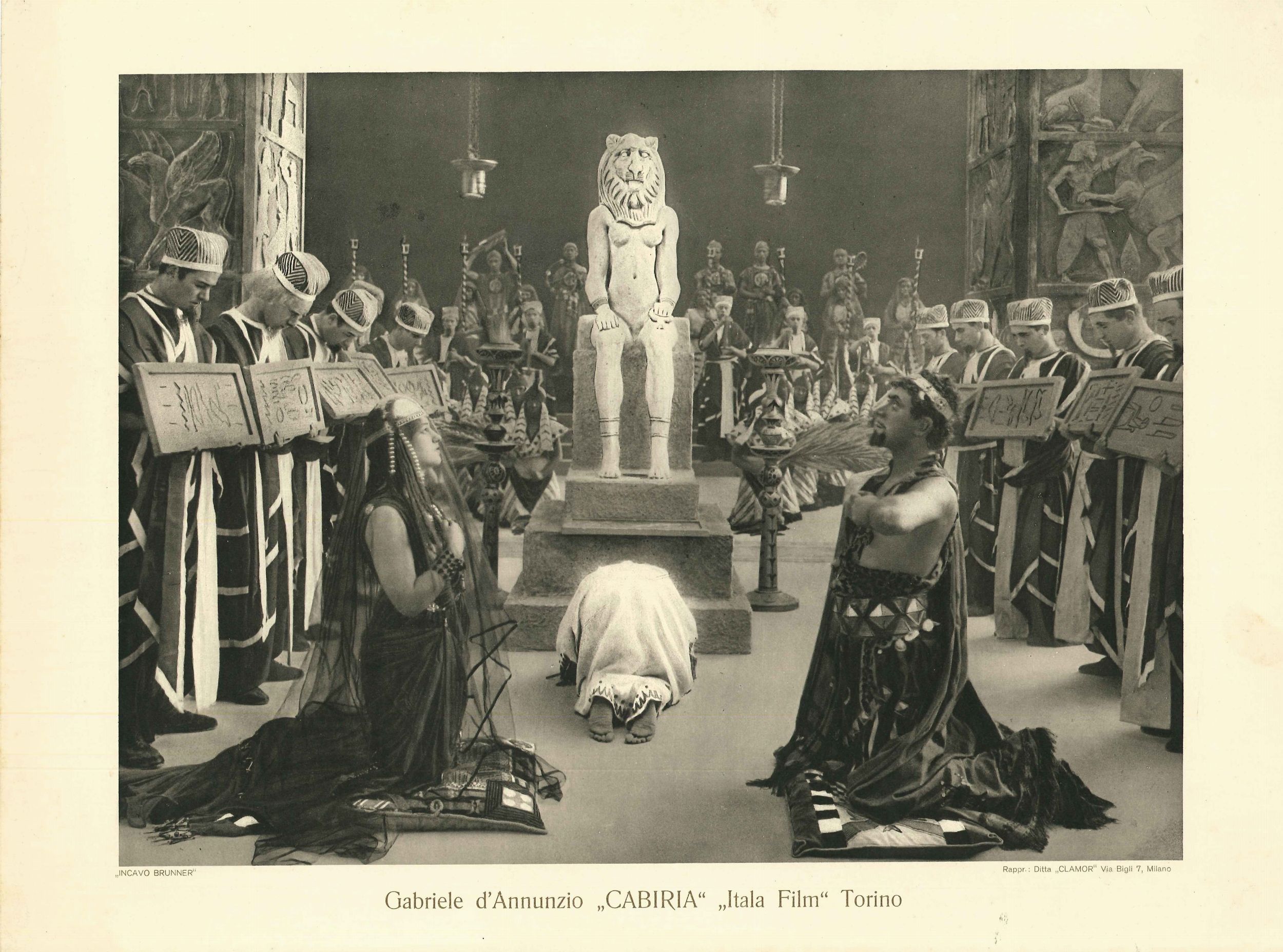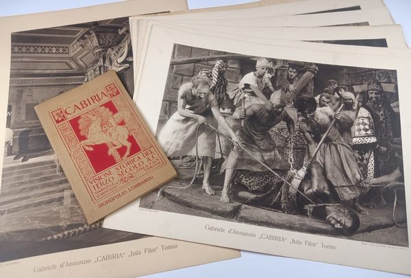 Set di 7 lobby card e brochure/libretto del film CABIRIA di Gabriele d'Annunzio, prima edizione 1914. La brochure/libretto è composta da 36 pagine.