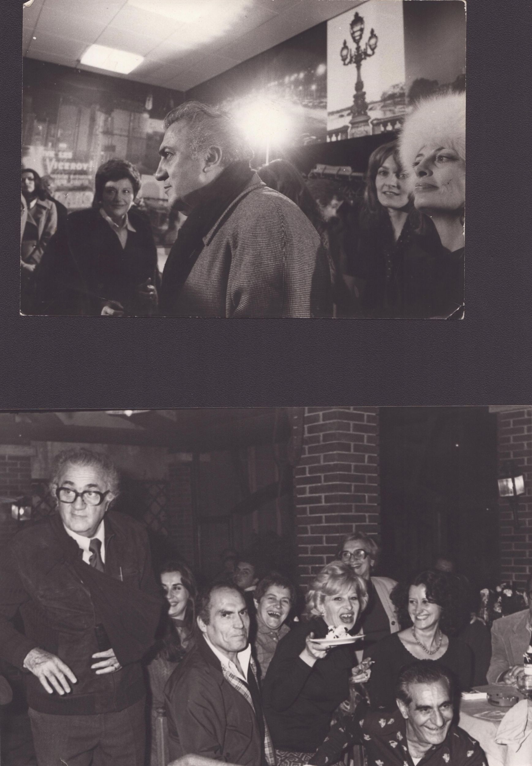 Lotto composto da tre fogli con appunti autografi di Federico Fellini, e due fotografie in b/n del regista.