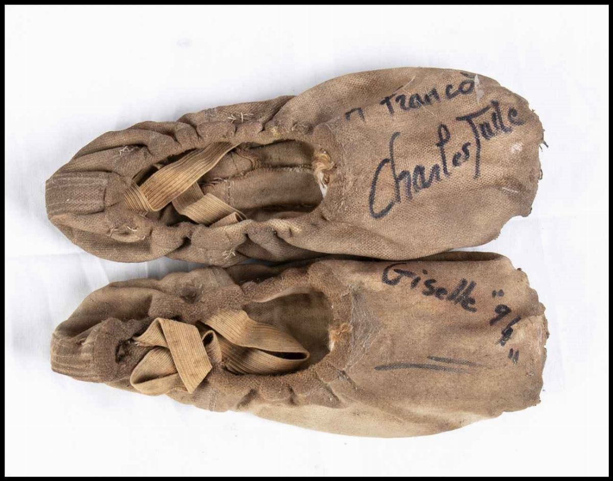 Memorabilia Spettacolo, Cinematografia... Paio di scarpette mezzepunte da danza classica, in tessuto e raso rosa con dedica ed autografo originali scritti a pennarello nero, da Charles Jude. Usate per Giselle nel 1994. Ballerino di fama mondiale nominato Danseur étoile nel 1977. Ha partecipato regolarmente alle tournée di Noureev and Friends. In qualità di danseur étoile è stato invitato a ballare con il Royal Ballet di Londra, le Ballet de l'Opéra di Vienna, il Corpo di Ballo del Teatro alla Scala di Milano, le Ballet Royal Danois e sulle scene dell'Opera di Roma, Napoli, Berlino, Stoccolma, New York