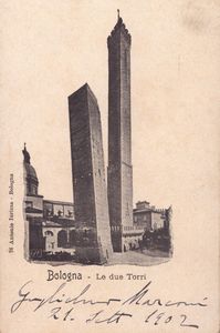 14x9,5cm Autografo con data 21 Sett 1902 ad inchiostro nero su cartolina non viaggiata di Bologna (Le due Torri). [..]