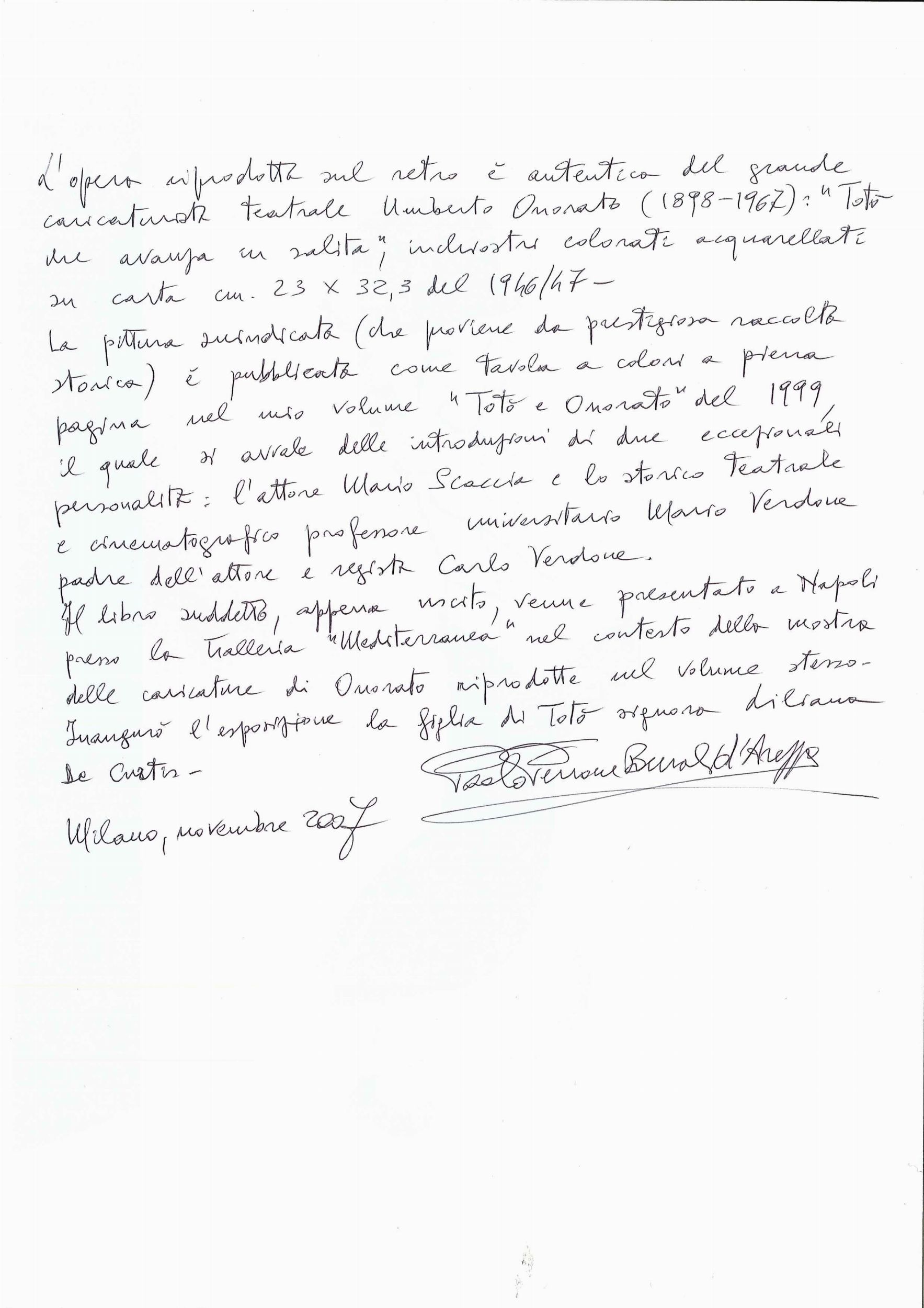 Con Certificato di autenticità dalla Fondazione Onorato.