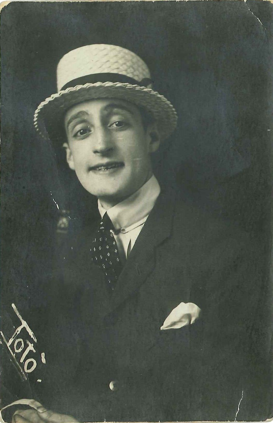 Foto di Totò agli albori del suo successo, con lunga dedica e autografo lasciata come ringraziamento al sig. Vittorio di Livorno nel 1919.