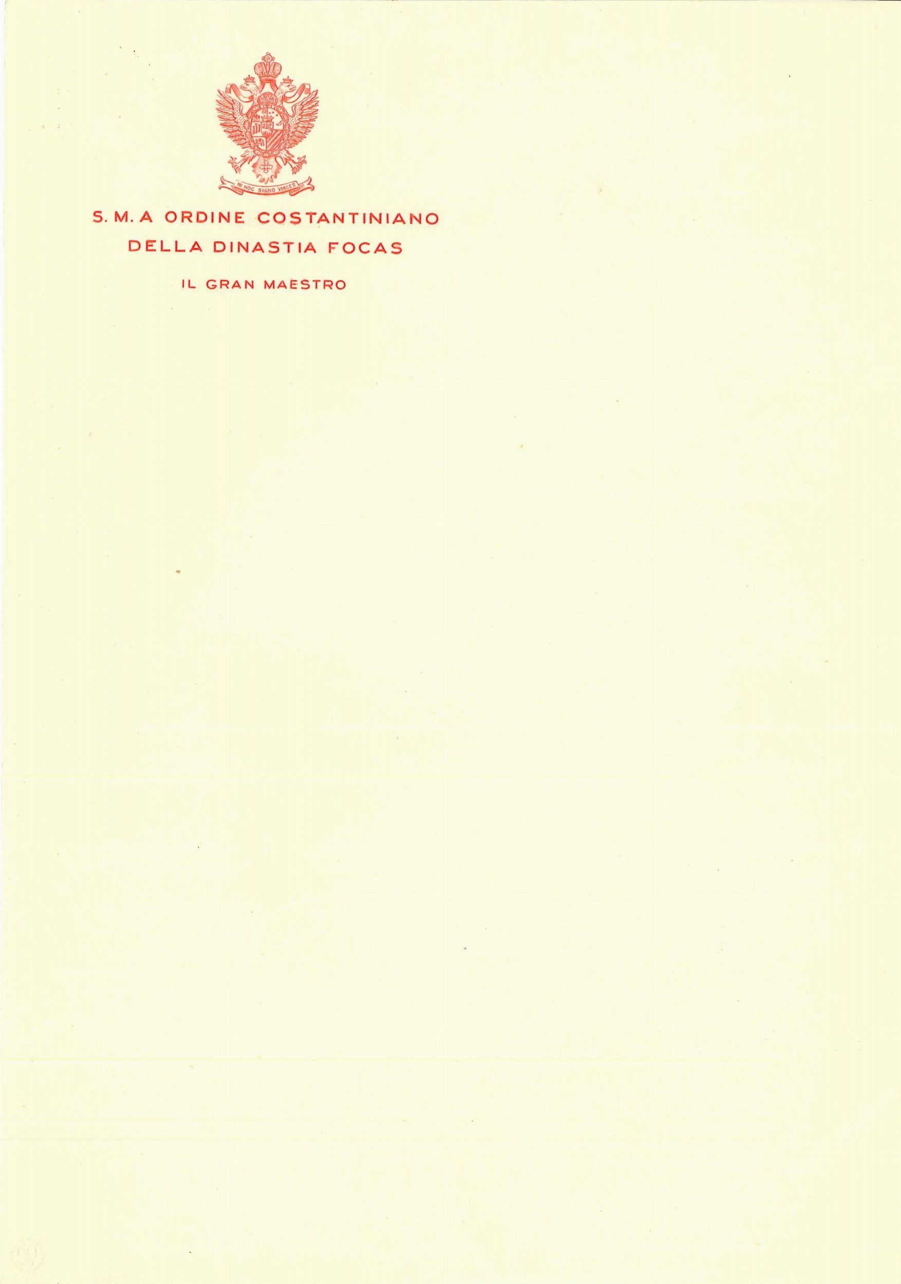 2 - Carta intestata S.M.A. Ordine Costantiniano della Dinastia Focas, il Gran Maestro (ovvero Principe Antonio De Curtis)