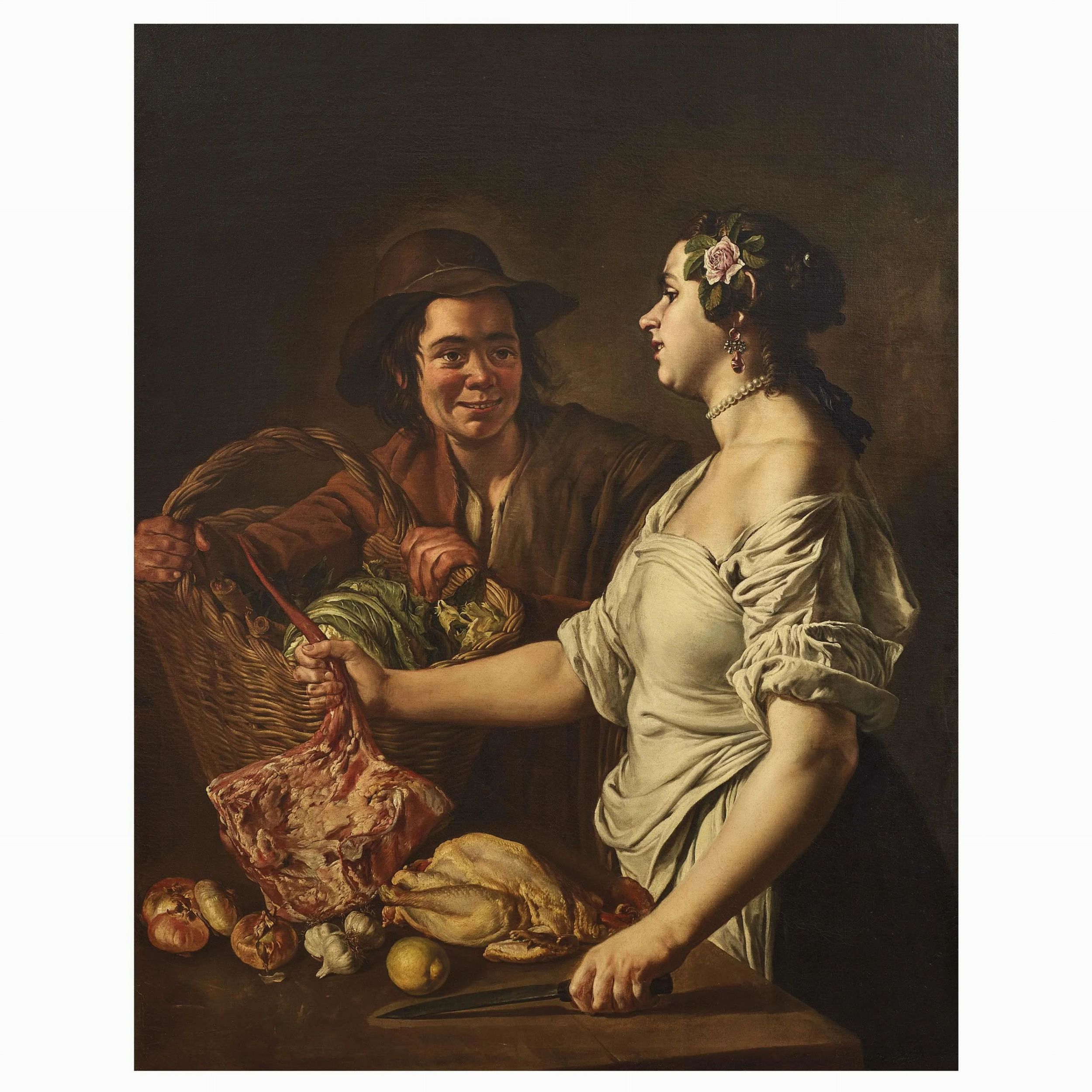 Pubblicato da Mina Gregori nella sua storica monografia sull’artista lombardo, il bel dipinto qui offerto costituisce in qualche modo il trait d’union fra la produzione di soggetto popolare per cui il Pitocchetto fu celebrato dai contemporanei e quella di nature morte, oggetto nel 2011 di una rassegna milanese a cura della medesima studiosa.