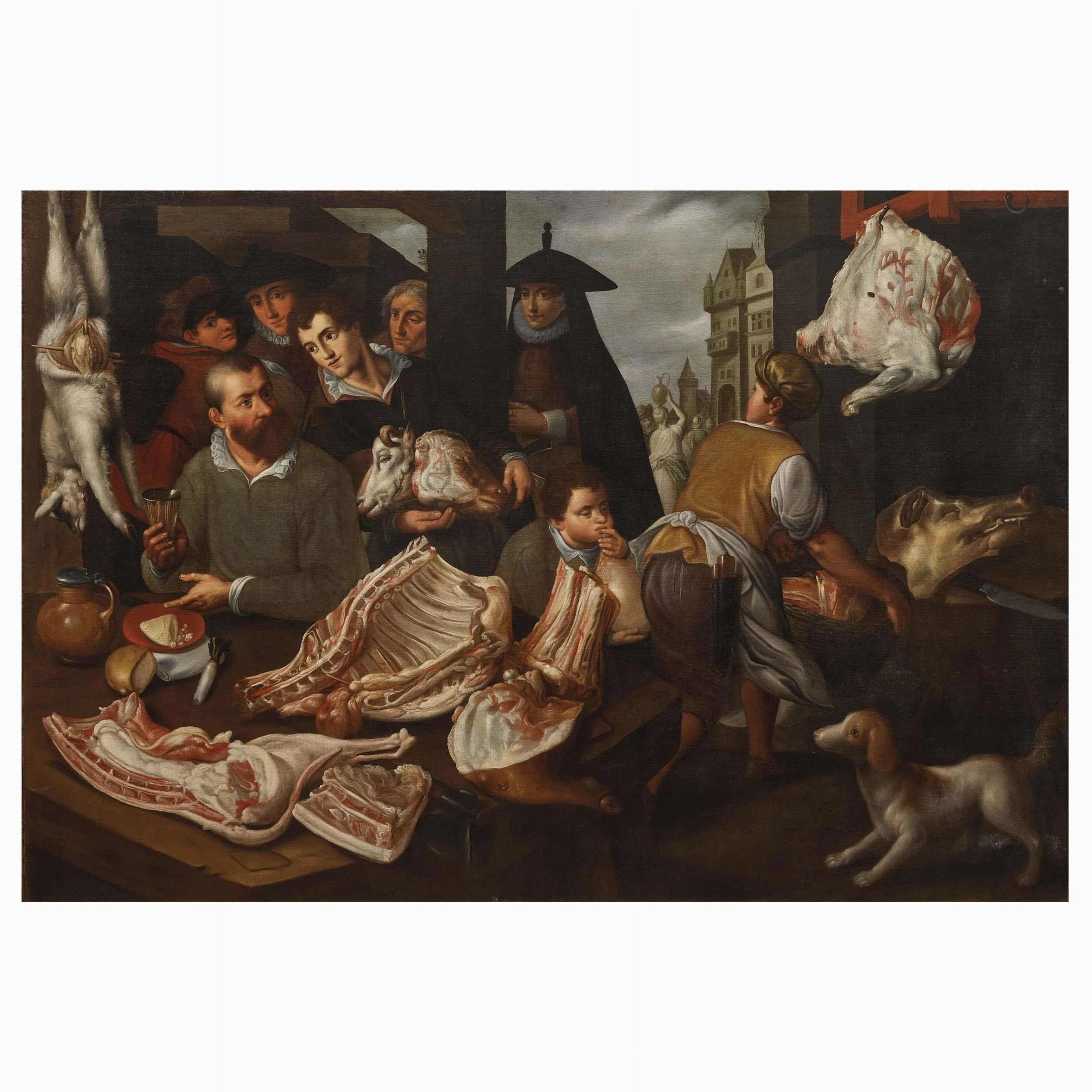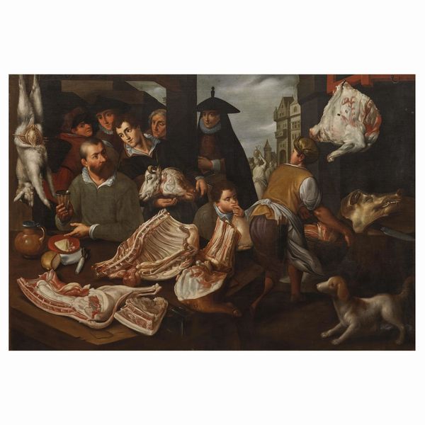 Attribuiti alla bottega cremonese di Vincenzo Campi nella raccolta di provenienza, i dipinti qui presentati devono essere piuttosto ricondotti ai modi di Joachim Bueckelaer (circa 1530-circa 1570) attivo ad Anversa nei decenni centrali del Cinquecento o, più verosimilmente, all’attività di un suo immediato seguace. Sono infatti numerosi i motivi di confronto iconografici e compositivi con le numerose opere documentate del pittore fiammingo, su tutti il tavolo in primo piano inclinato verso lo spettatore a mostrare una grande varietà di vettovaglie e utensili da cucina.