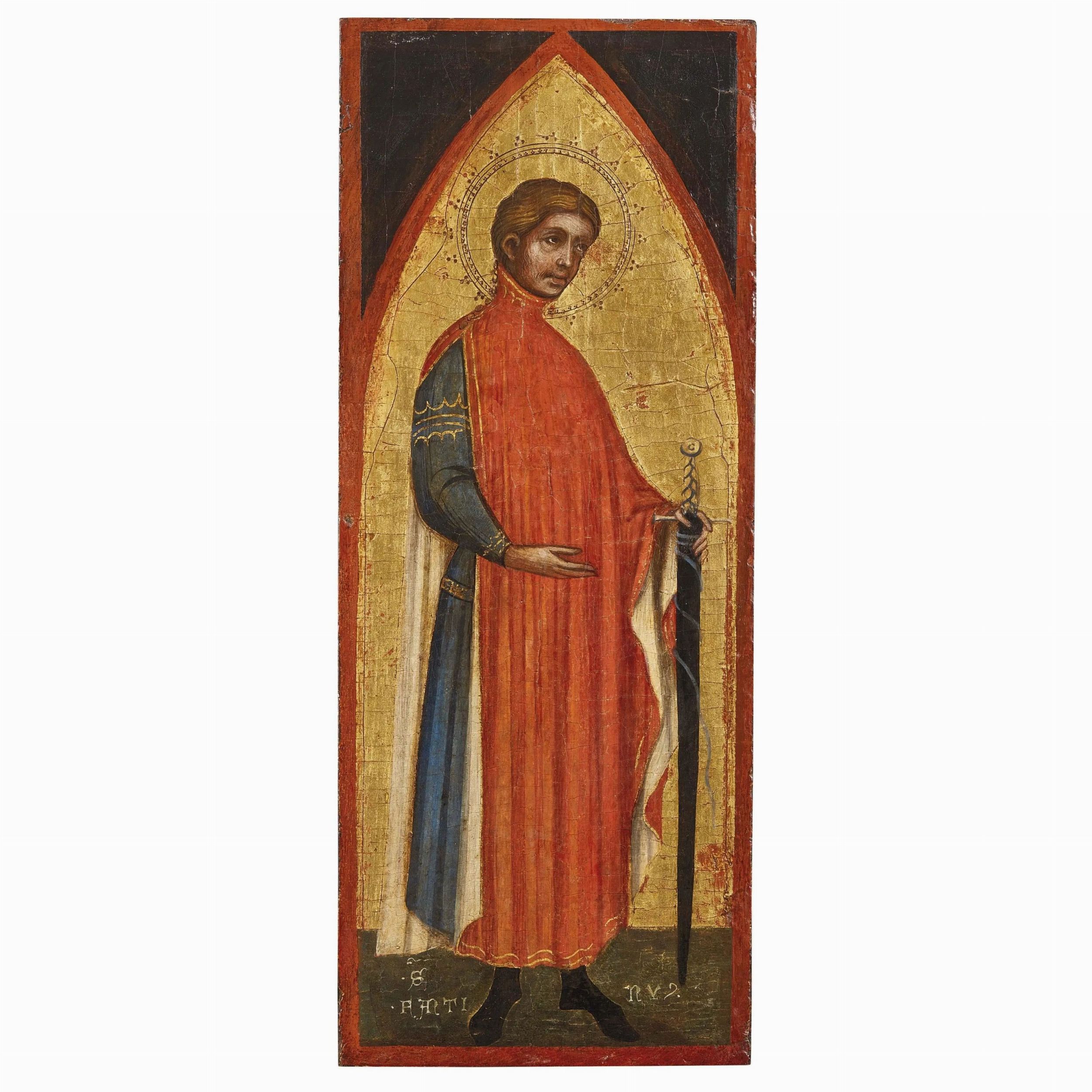 Attribuite dapprima dubitativamente a Stefano o a Jacobello di Bonomo e, successivamente, al solo Jacobello dietro suggerimento di Filippo Todini, le nostre opere sono state ricondotte alla mano di Stefano di Sant’Agnese - anche noto come “plebanus” cioè parrocchiano della chiesa veneziana intitolata alla santa - da Andrea De Marchi che colloca il polittico di cui erano parte verso la fine dell’attività di questo artista, il cui linguaggio si sposta da una matrice giovanile paolesca a un’infatuazione laurenziana, condividendo con il già menzionato Jacobello di Bonomo movenze di un gusto gotico timidamente avviato alla fase internazionale. Se infatti la Madonna col Bambino firmata e datata 1369 da Stefano ricorda un’opera di Paolo Veneziano del 1347 nella chiesa parrocchiale di Carpineta (Cesena), l’Incoronazione della Vergine delle Gallerie dell’Accademia del 1381 rivela la conoscenza delle novità introdotte da Lorenzo Veneziano che rispondono alla nuova esigenza naturalistica della cultura pittorica veneziana trecentesca attraverso un’accentazione volumetrica delle figure e un più elegante fluire dei panneggi (cfr. Guarnieri 2008), caratteristiche riscontrabili anche nei santi qui presentati e che si manifestano nel vigore plastico del San Cristoforo del 1385, ultima opera a noi nota di Stefano, parte di un polittico originariamente nella Scuola dei Forneri alla Madonna dell’Orto e oggi al Museo Correr.