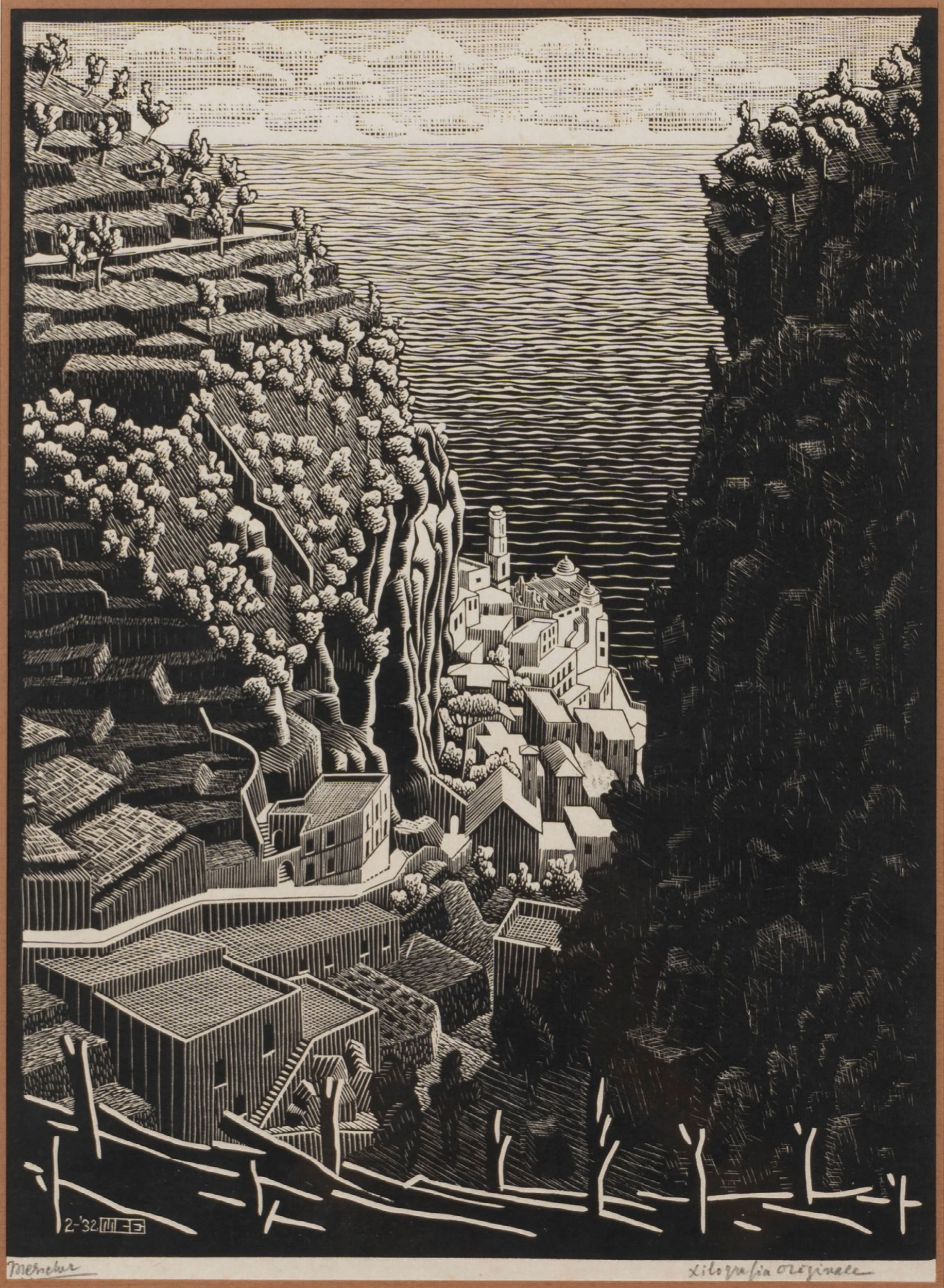 Data e monogramma in basso a sinistra nella lastra: 2-'32 MCE ( febbraio 1932 Maurits Cornelis Escher)