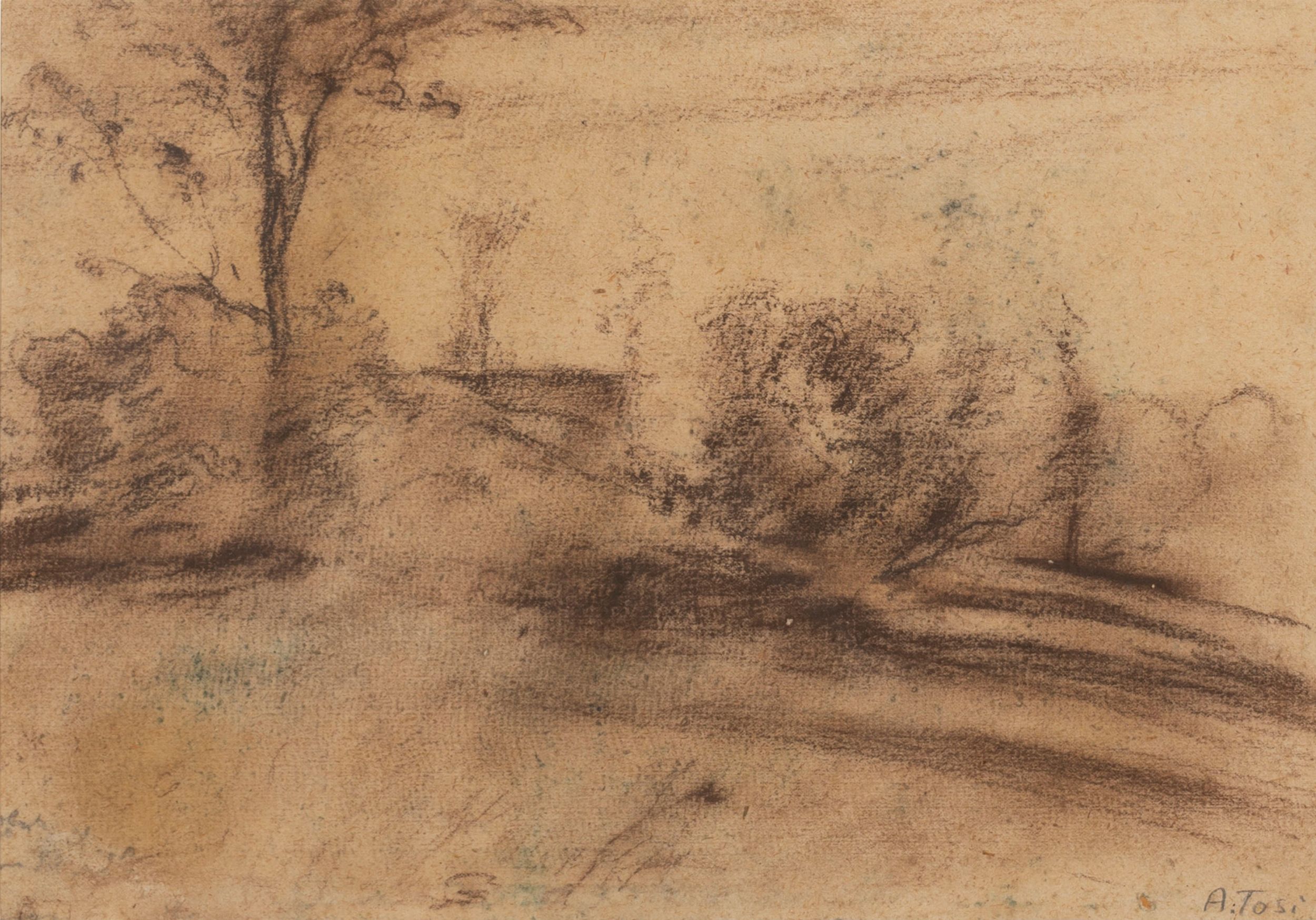 Firmato in basso a destra: A. TosiIn basso a destra, sul passepartout la dedica: Al caro Mario Puccini ricordandolo nella battagliera bottega di Monte Napoleone, Arturo Tosi