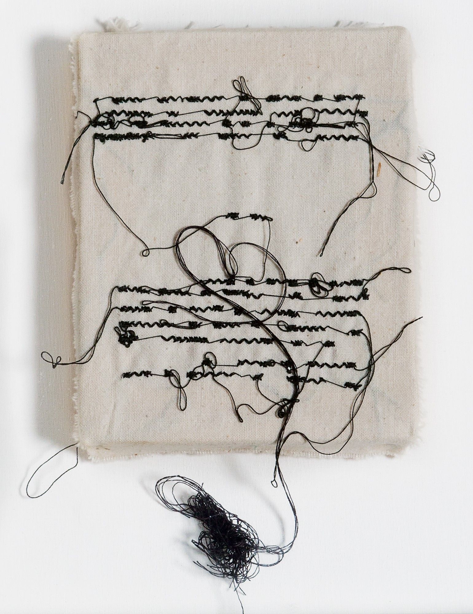 filo nero, tela e tavola, cm 12,8 x 10,3
