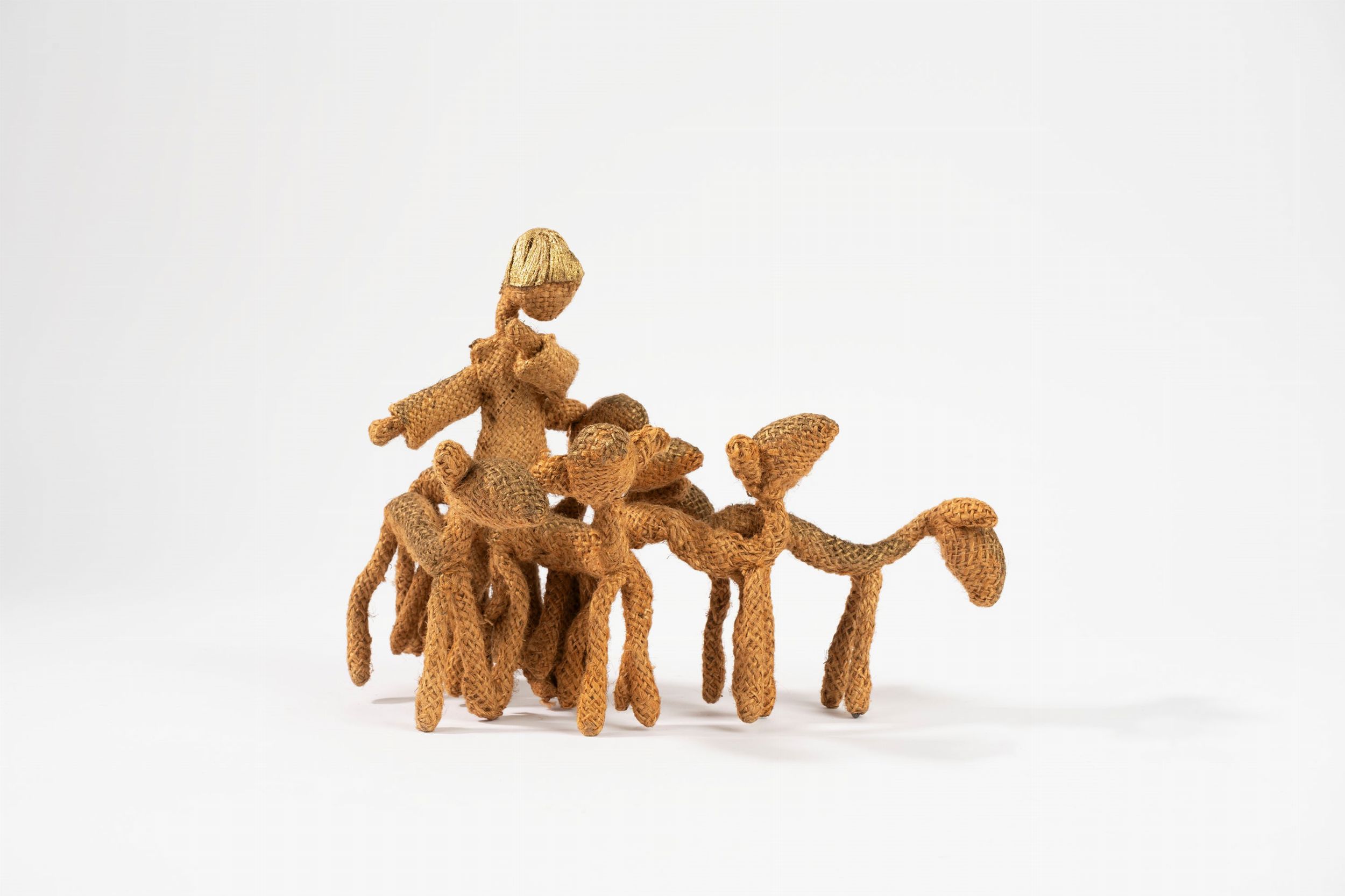 tela di juta, spago, filo di ferro, legno e vernice oro