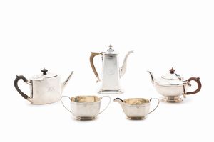 in argento, Peso kg 1,825 cm 48x28,00 h cm 22,00-19,00-10,00 Italia, XX secolo composto da caffettiera, teiera [..]