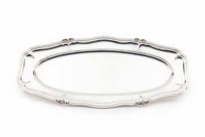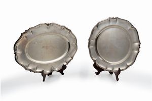 in argento, Peso kg 2,467 cm 48,50x33,50-37,00 Italia, XX secolo uno rotondo ed uno ovale con profili polilobati [..]