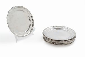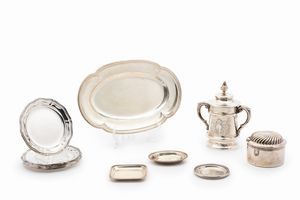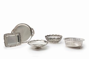 in argento, Peso kg 2,280 diametri cm 22,50-24,00-24,50-26,00-28,50-29,50 Italia, XX secolo di varie forme e [..]