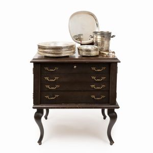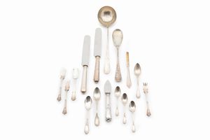 in argento 925, Peso complessivo kg 14,650 (comprensivo degli inserti non in argento / servizio piatti tot. kg [..]