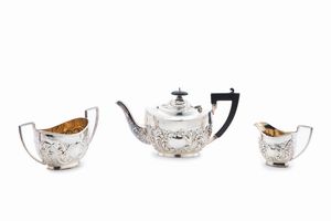 in argento, Peso g 781,25 Inghilterra, città di Sheffield, 1932 composto da teiera, lattiera e zuccheriera, con [..]