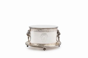 in argento, Peso kg 2,385 (al netto dell'inserto non in argento del portaghiaccio) diametro cm 15,50-18,00x18,00 [..]