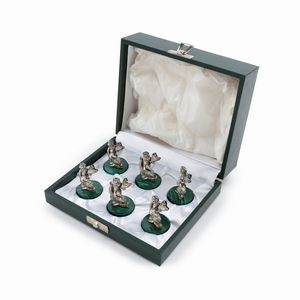 in argento, Peso g 660,00 (comprensivo degli inserti non in argento) XX secolo composto da un mestolo, sette [..]