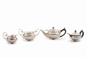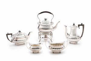 in argento, Peso kg 3,796 Inghilterra, Sheffield, inizi XX secolo composto da samovar con manico reclinabile [..]