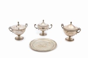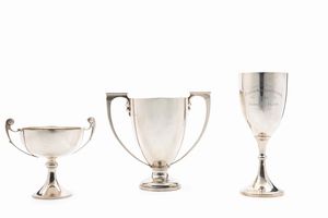 in argento, Peso kg 1,300 cm 17,00x21,00-18,00x23,50-20,00x26,50 diametro cm 17,50 Italia e Inghilterra, XX secolo [..]