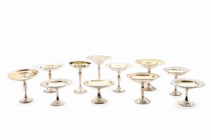 in argento e vermeil, Peso kg 2,130 (comprensivo delle basi appesantite) cm h da 10,00 a 17,00 USA, inizi XX secolo [..]