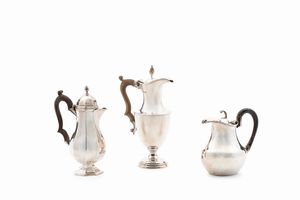 in argento, Peso g 940,00 cm h 24-20-15 Inghilterra, inizi XX secolo di altezze e forme diverse, con manici in [..]