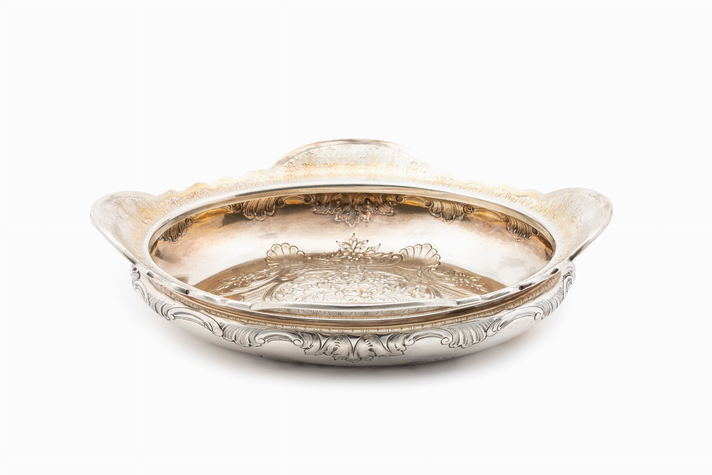 Inghilterra, XX secolo di forma ovale a volute, con ricco decoro a sbalzo.