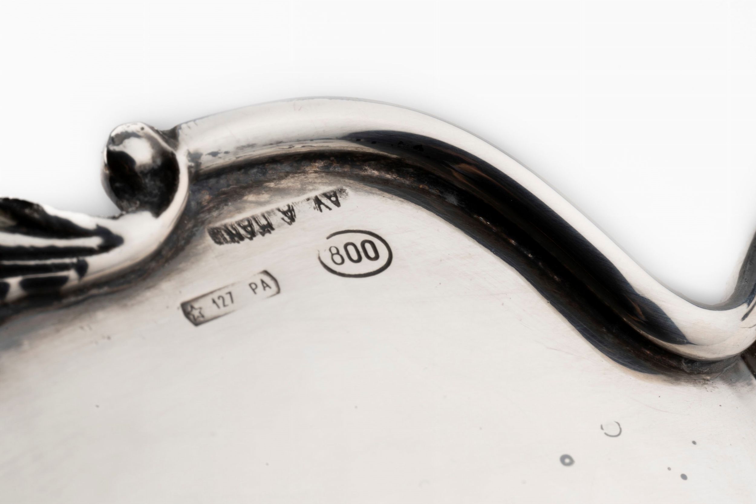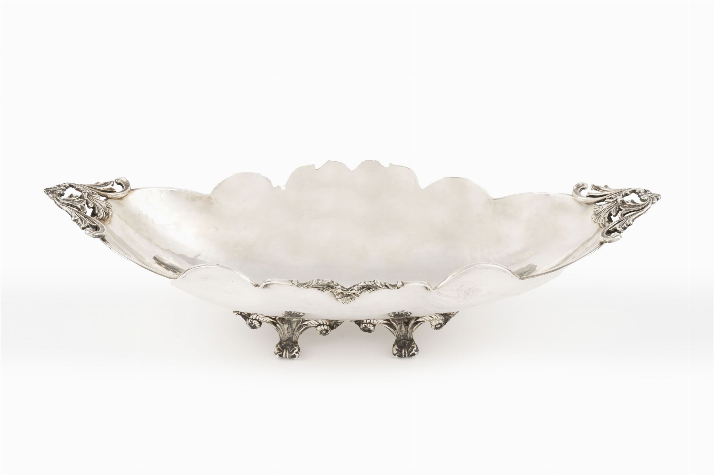 Italia, XX secolo di forma ovale poggiante su quattro piedini a motivi vegetali, prese e bordi con decori fogliacei.