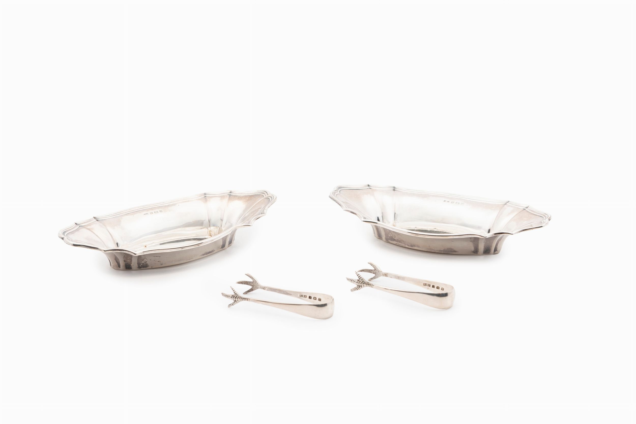 Inghilterra, inizi XX secolo di forma ovale, pinze con prese a zampe, in astuccio d'epoca.