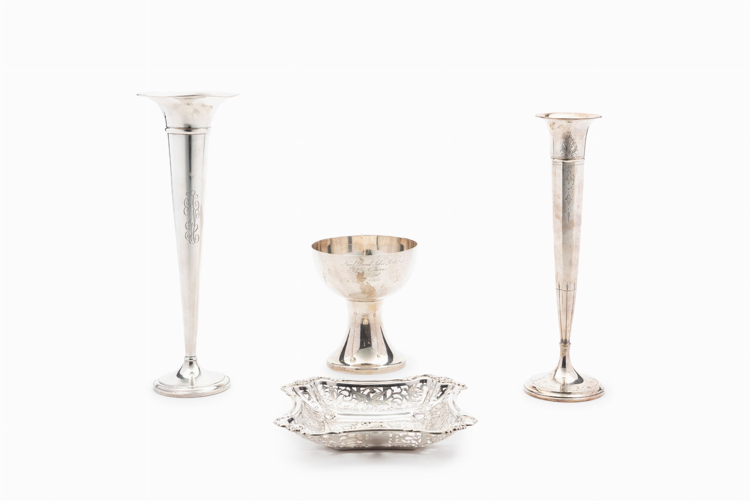 USA e Inghilterra, prima metà XX secolo una coppa, un cestino traforato, due vasi a calice, difetti (base appesantita, ammaccature).