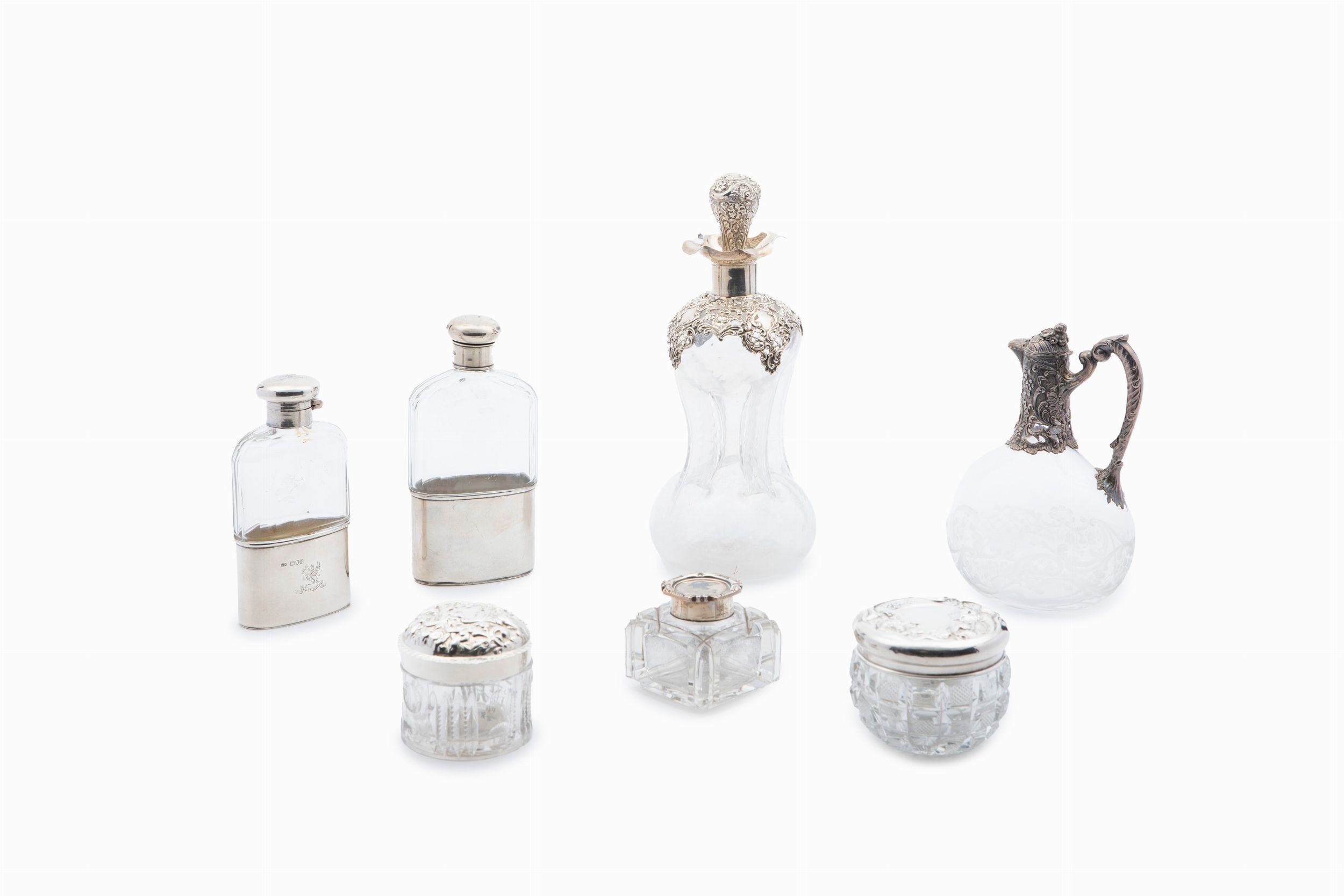Inghilterra, inizi XX secolo composto da una bottiglia, un caraffa, due fiaschette, due scatole e un calamaio.