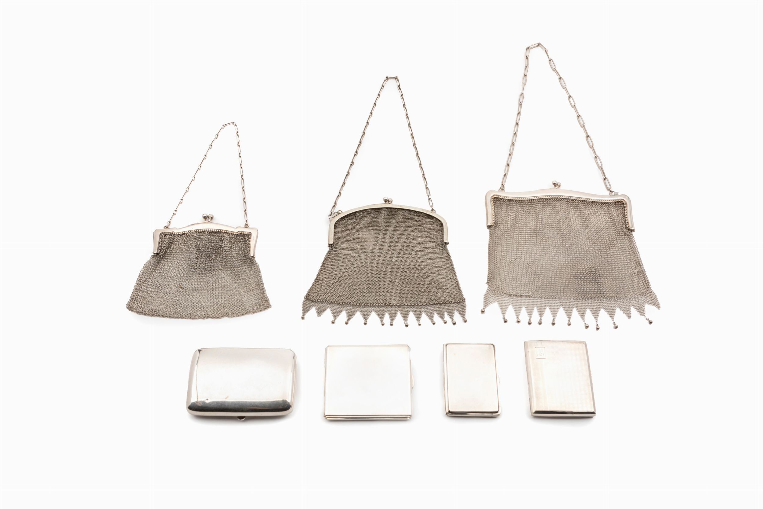 Italia, Inghilterra. mettà XX secolo borsette a rete con manico a catena, scatole portasigarette da tasca.