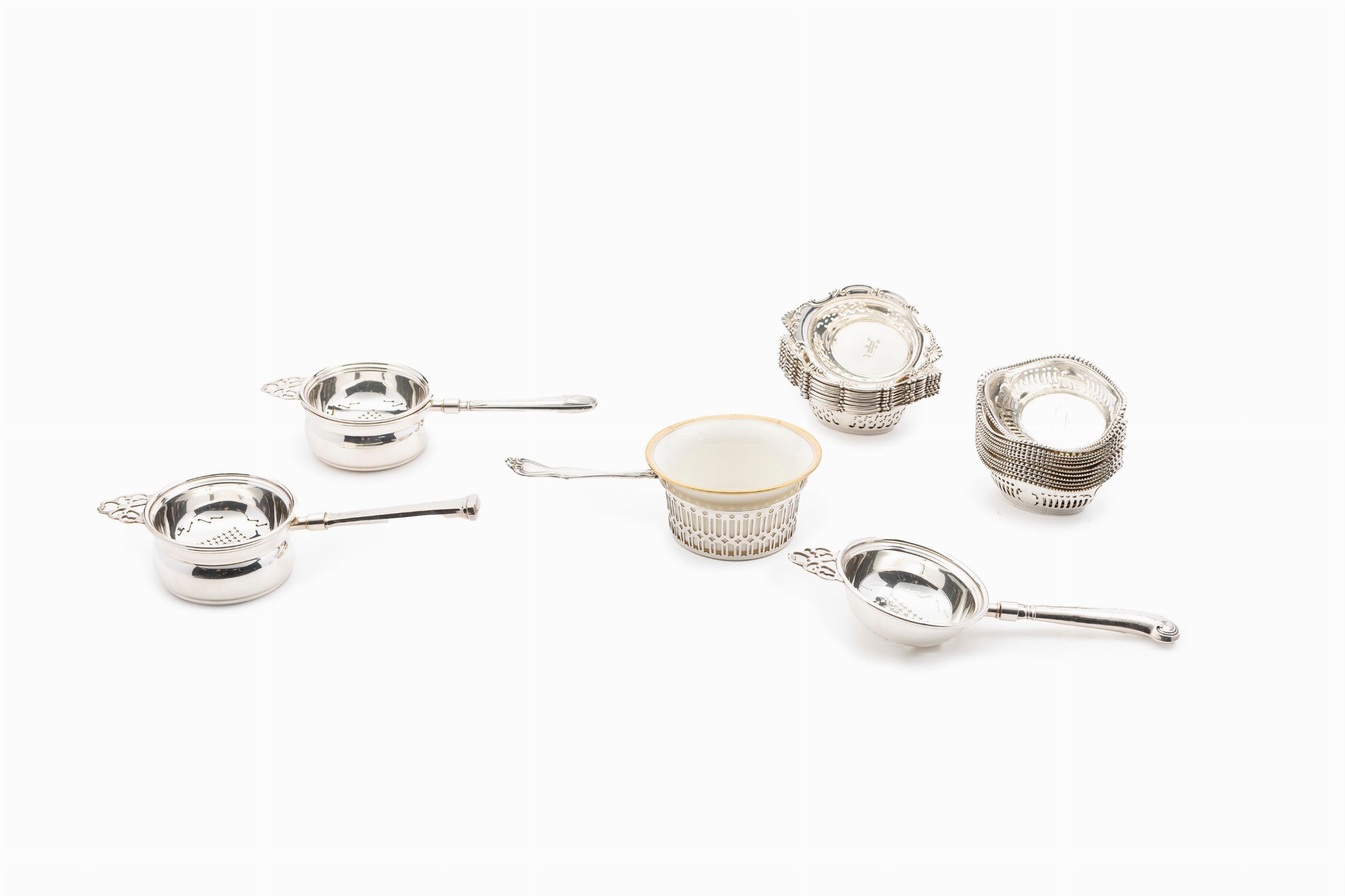 tre passa tè con solo manico in argento, il resto è in sheffield (cm.18x8),