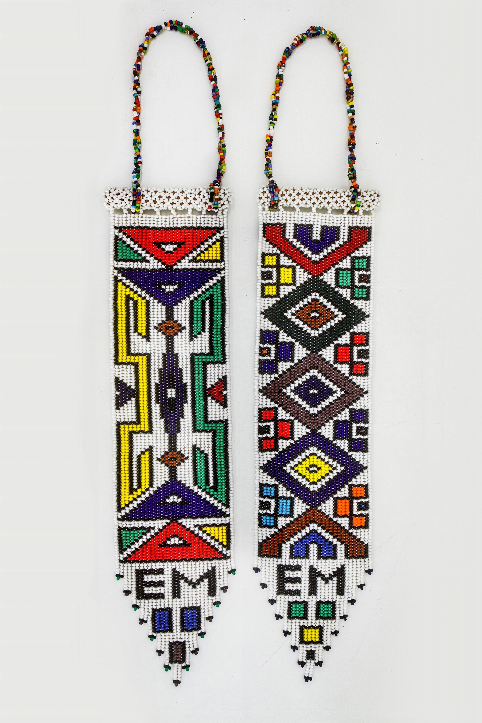 Tecnica mista e perline, cm 48x20 (opera complessiva) - cm 48x9 (ciascuna)
