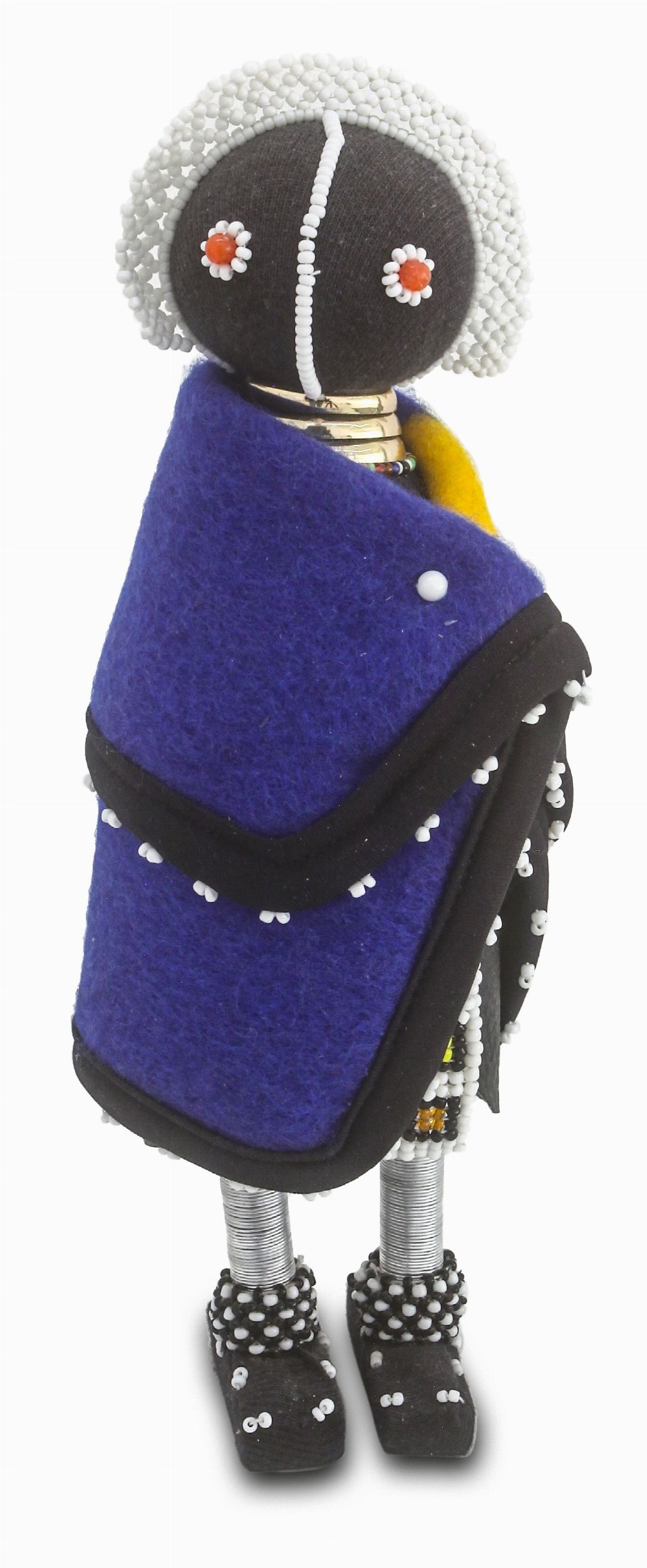 Scultura in tessuto, perline e assemblaggio di materiali vari, cm 28x12x8