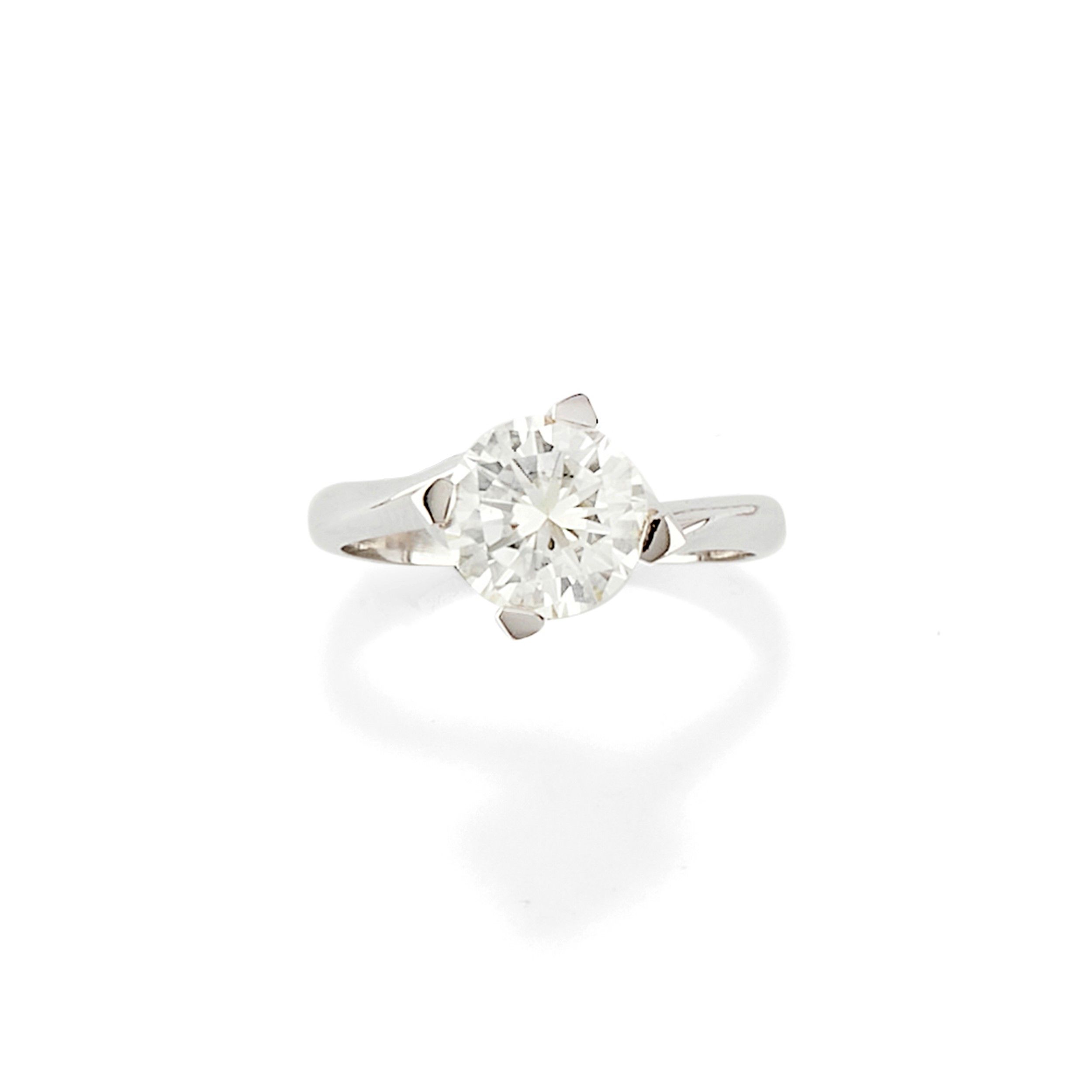 al centro diamante taglio brillante di ct 2,70 circa, prob. colore N/O, purezza VS.