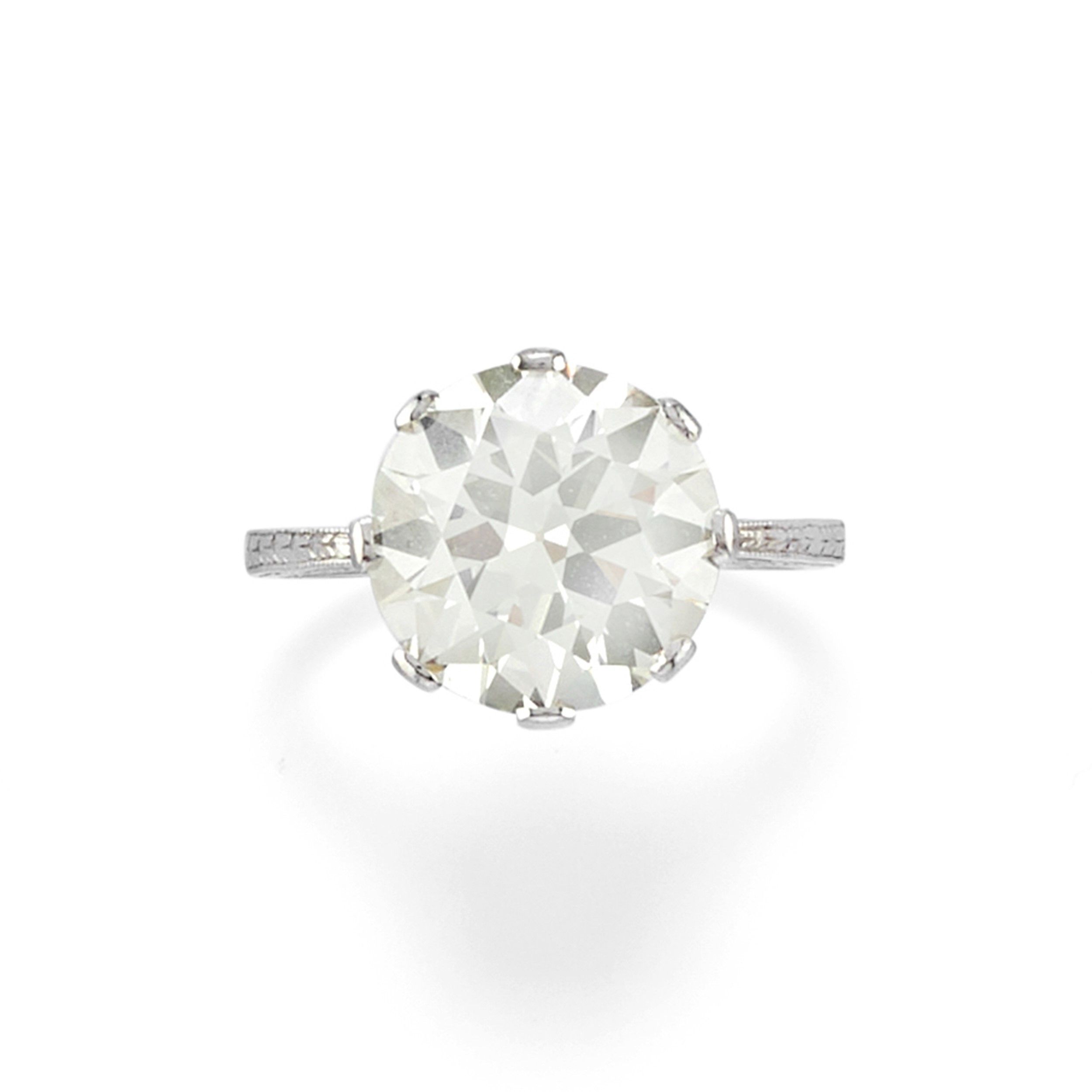 al centro un diamante taglio brillante di ct 5,00 circa (prob. colore K/L, purezza VS).